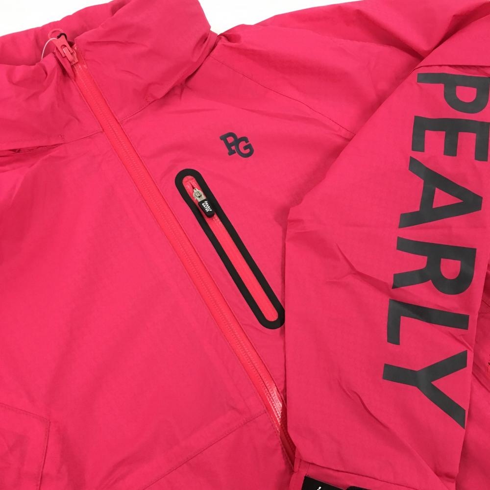 【新品】パーリーゲイツ 2WAYレインワンピース ピンク×ネイビー 地模様 袖着脱可 フード付 レディース 0(S) ゴルフウェア PEARLY GATES