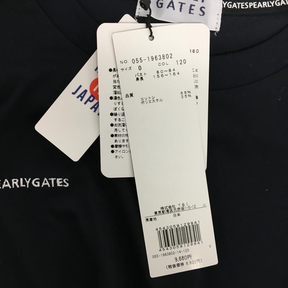【新品】パーリーゲイツ Tシャツ ネイビー ロゴ刺しゅう シンプル レディース 0(S) ゴルフウェア PEARLY GATES