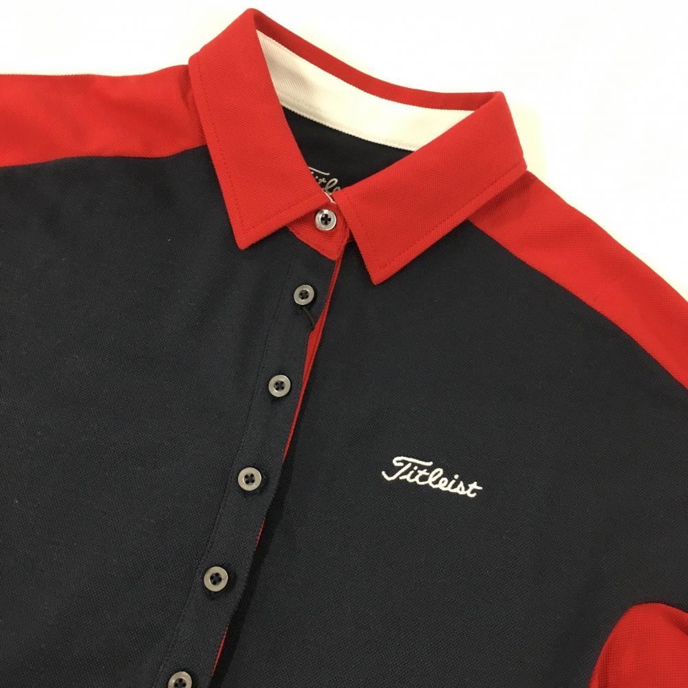 【新品】タイトリスト 半袖ポロシャツ ネイビー×レッド 切替 ロゴ白 レディース M ゴルフウェア TITLEIST
