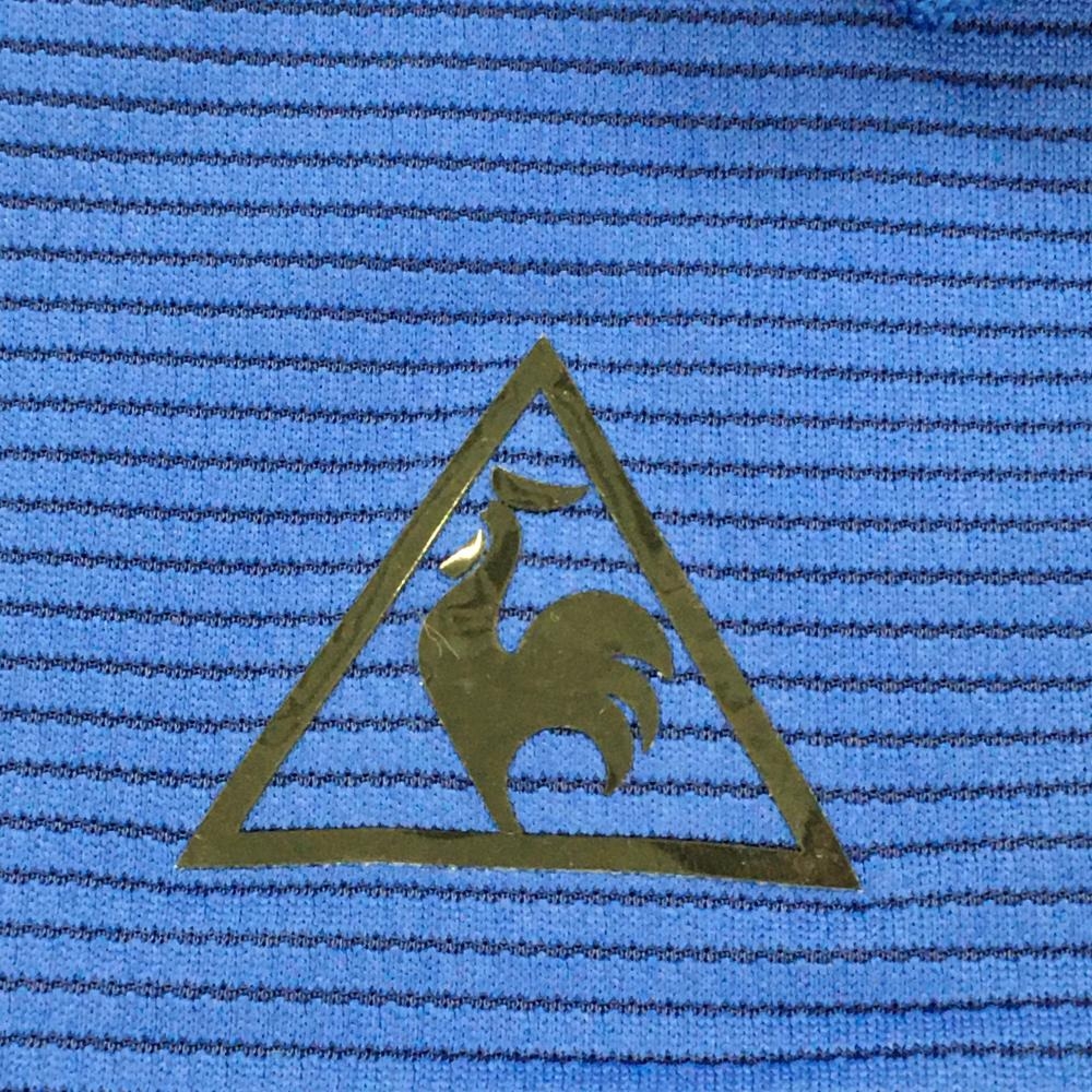 【美品】ルコック 半袖ポロシャツ ブルー 細ストライプ 胸元ロゴ メンズ LL ゴルフウェア le coq sportif