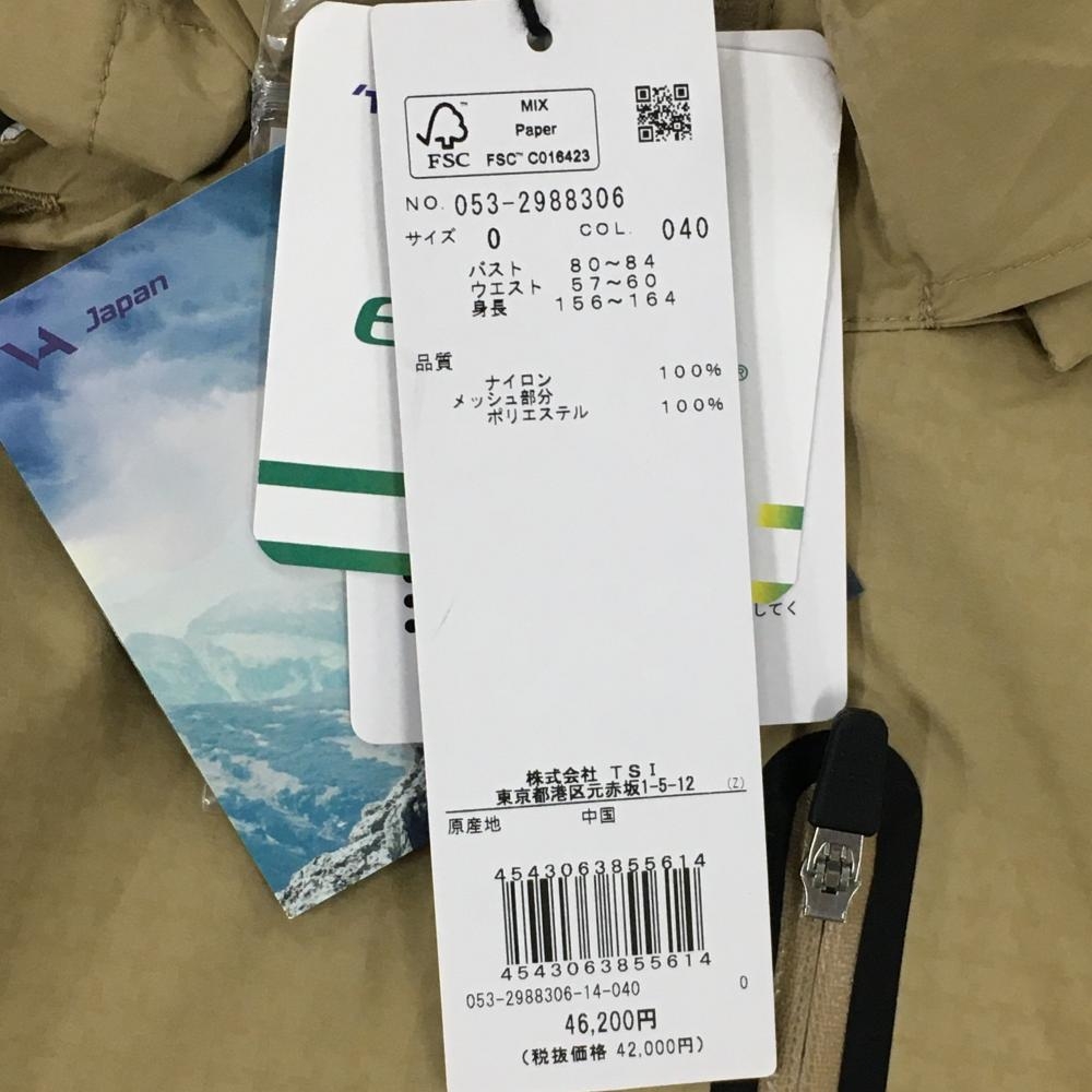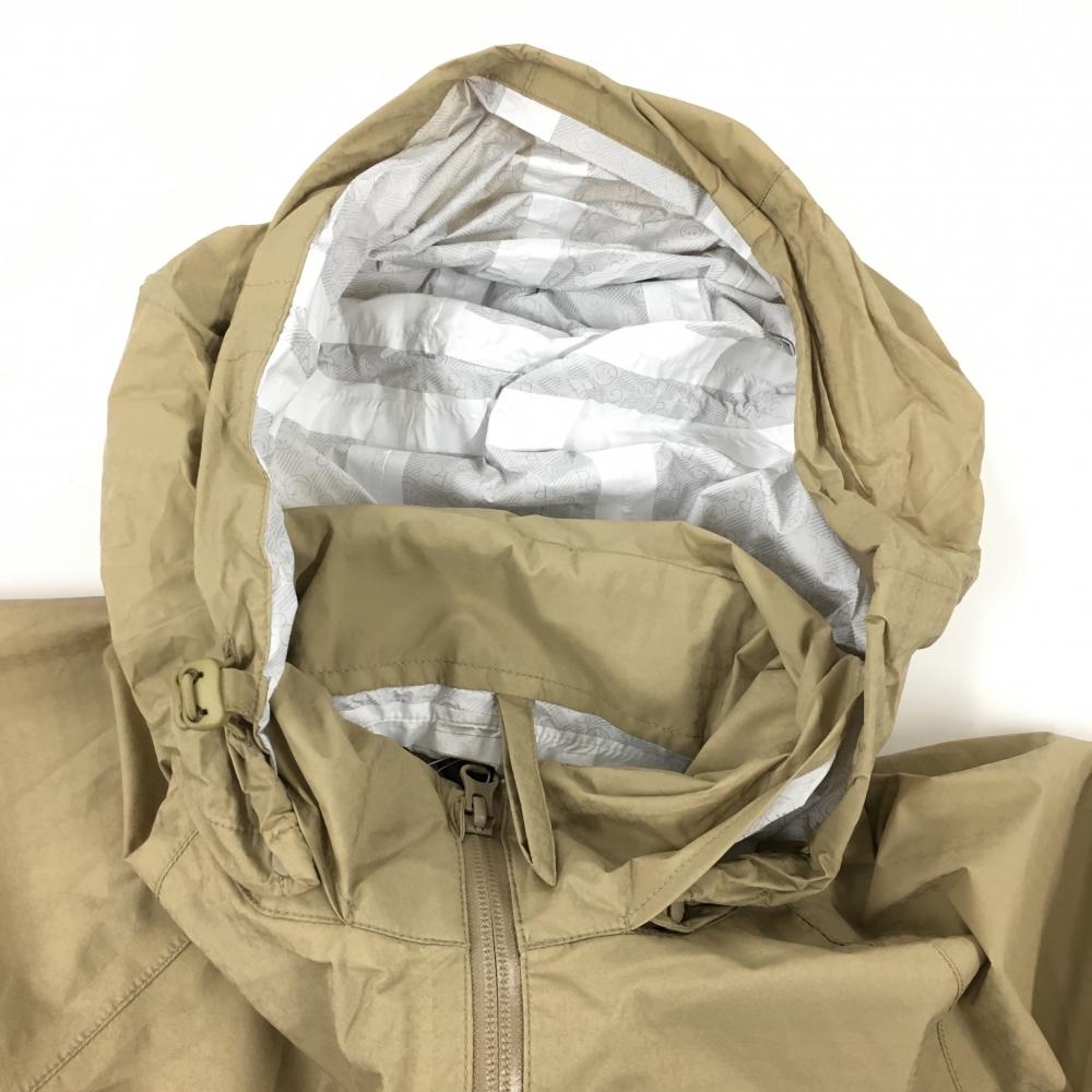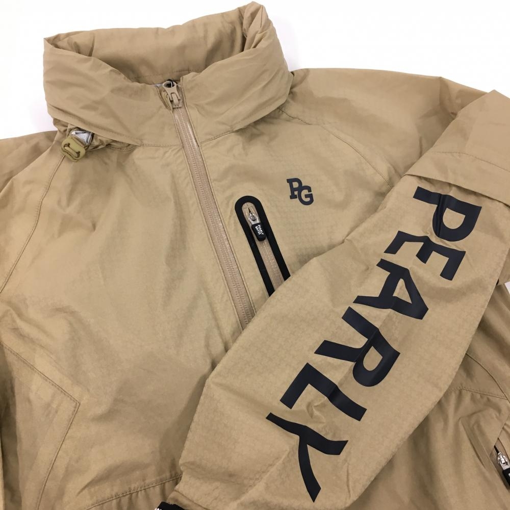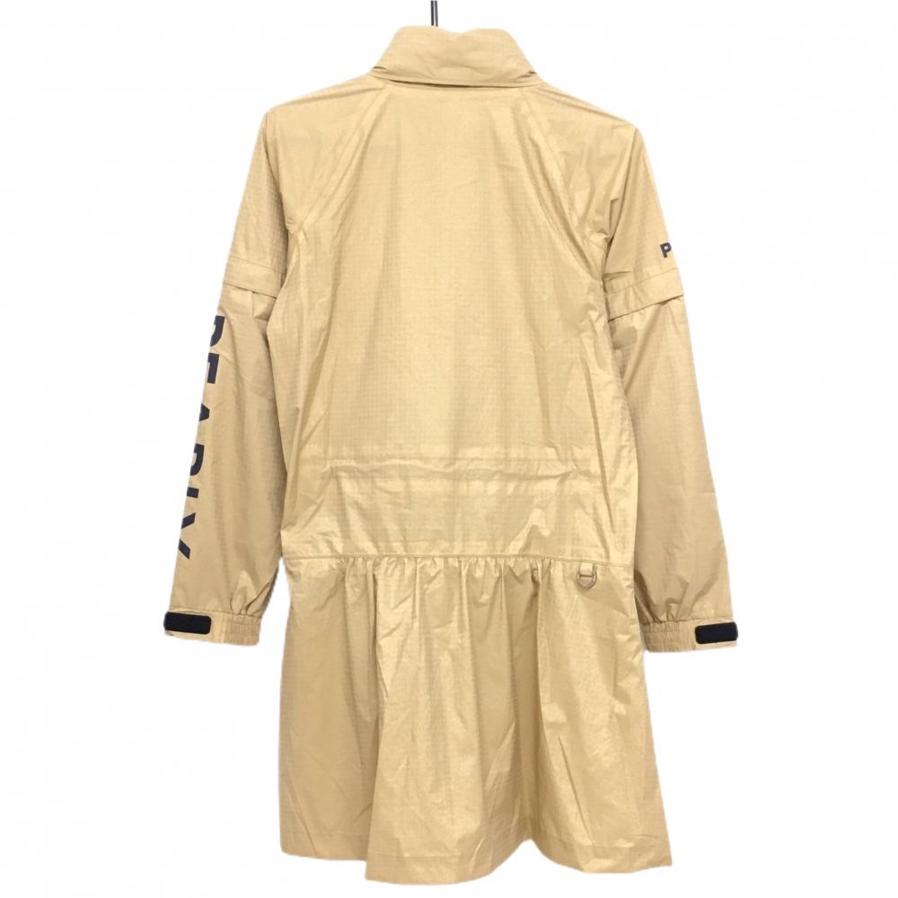 【新品】パーリーゲイツ 2WAYレインワンピース ベージュ×ネイビー 地模様 袖着脱可 フード付 レディース 0(S) ゴルフウェア PEARLY GATES
