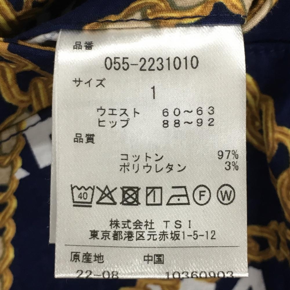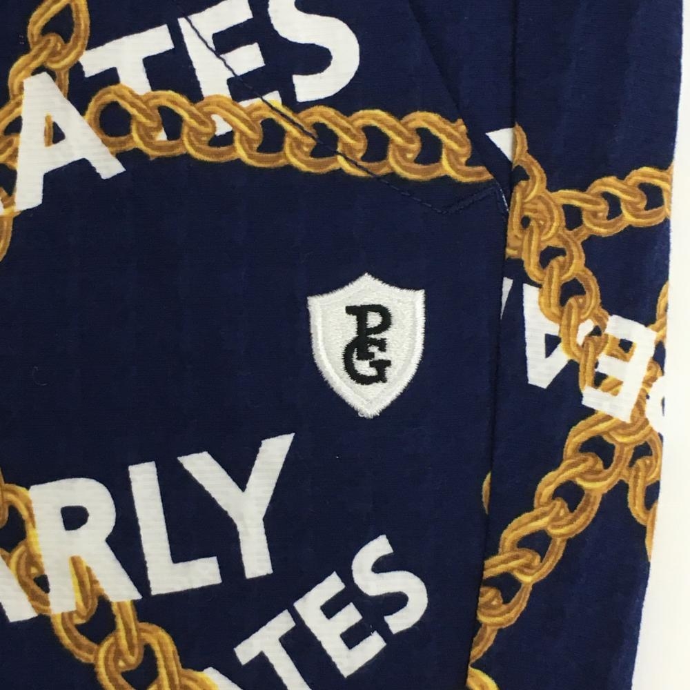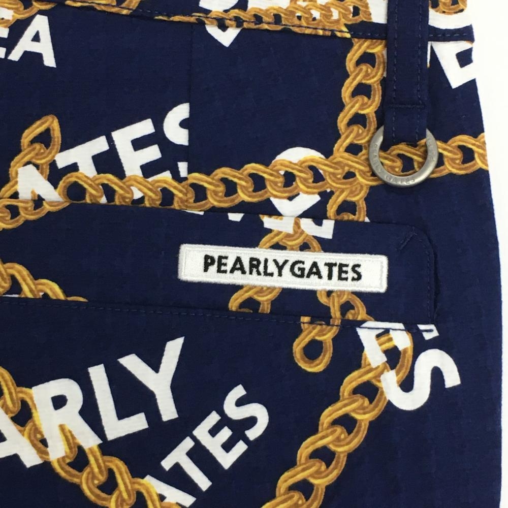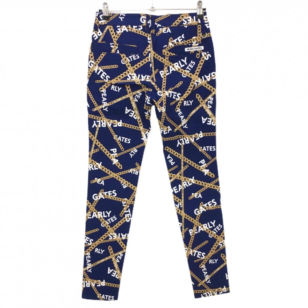 【新品】パーリーゲイツ パンツ ネイビー×ゴールド チェーン柄 織生地 レディース 1(M) ゴルフウェア PEARLY GATES