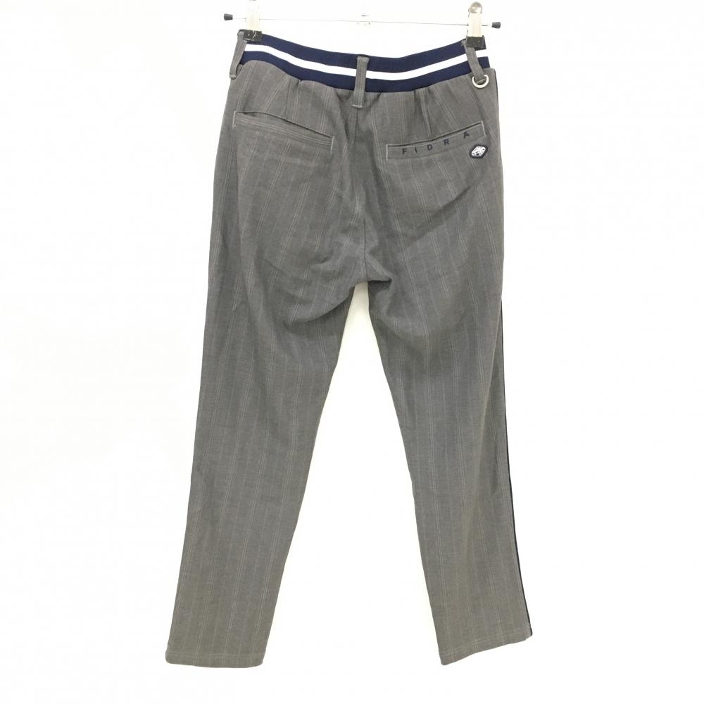 【超美品】フィドラ パンツ グレー×ネイビー ストライプ調 ウエスト一部ゴム 裏微起毛 サイドライン レディース M/M ゴルフウェア FIDRA