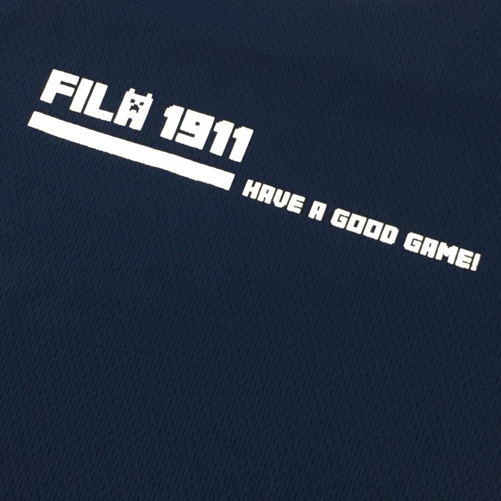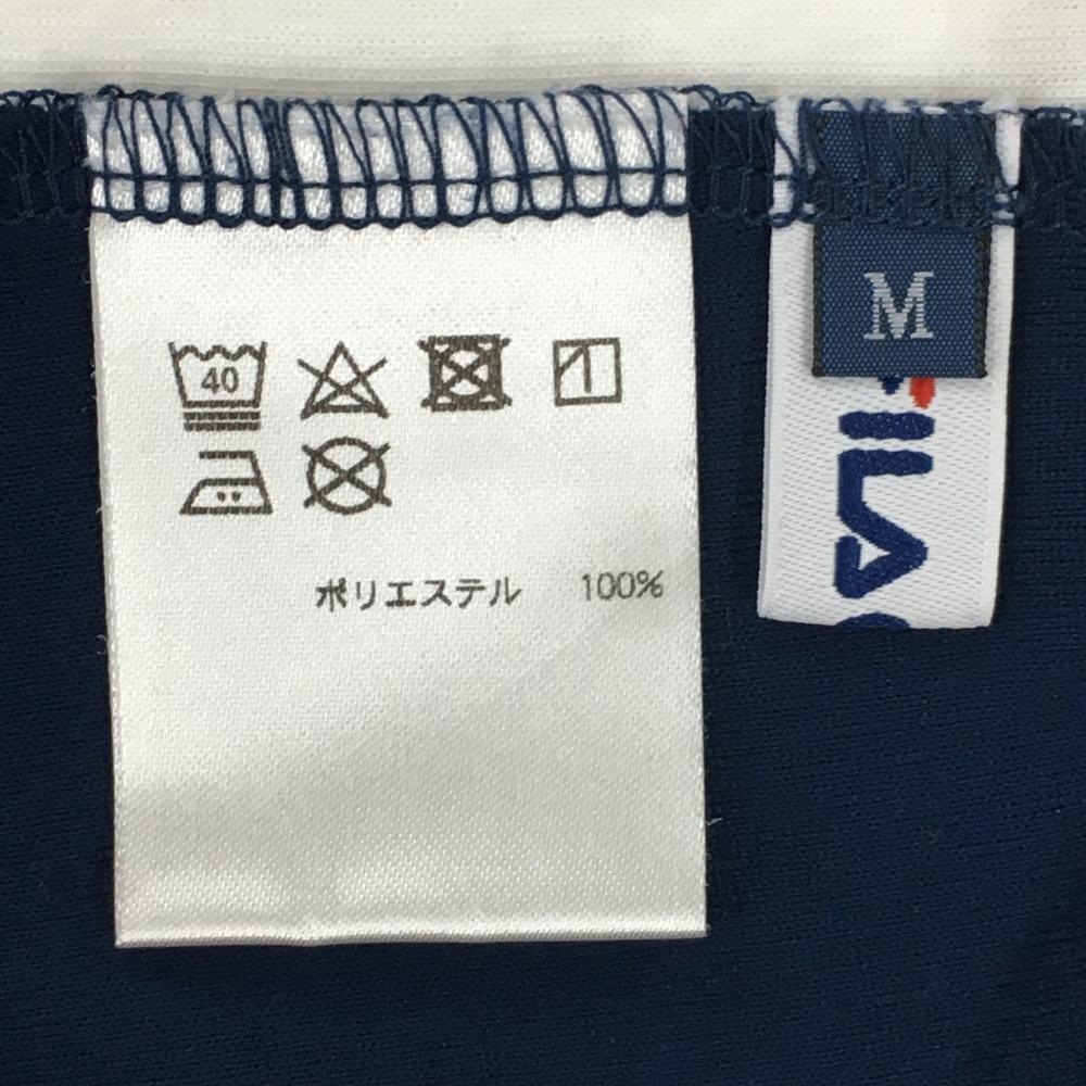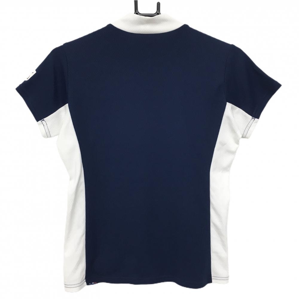 【美品】フィラゴルフ 半袖ハイネックシャツ ネイビー×白 バイカラー レディース M ゴルフウェア FILA GOLF