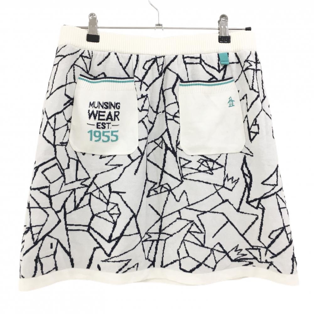 マンシングウェア ニットスカート 白×黒 総柄 裏地付 レディース L ゴルフウェア Munsingwear