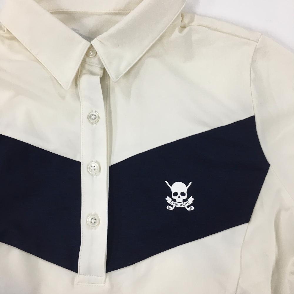 【美品】チュクチュスポーツ 長袖ポロシャツ 白×ネイビー スカル 韓国モデル ストレッチ レディース L ゴルフウェア CHUCUCHU