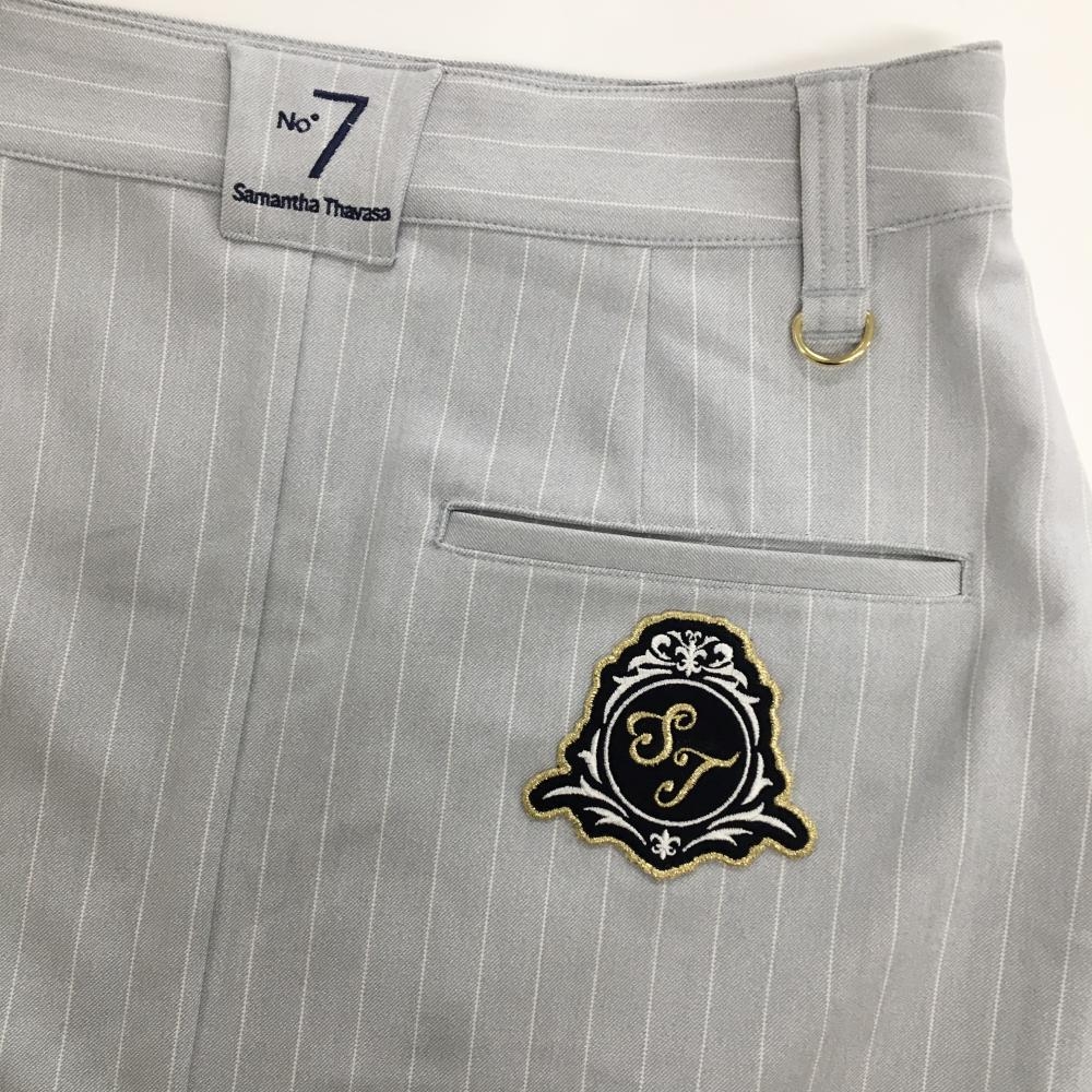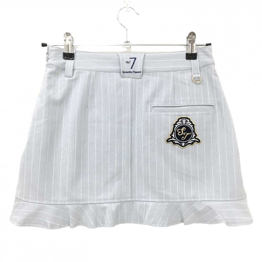 【超美品】サマンサタバサNo.7 スカート ライトグレー×白 ストライプ 後ろ裾フリル レディース 36(S) ゴルフウェア Samantha Thavasa