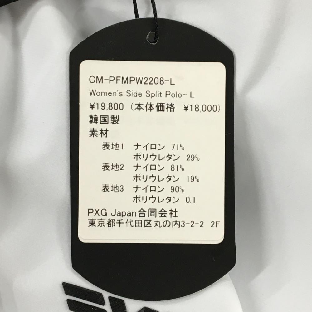 【新品】パーソンズエクストリームゴルフ 半袖ポロシャツ 白×黒 背面地模様 スナップボタン レディース L ゴルフウェア PXG