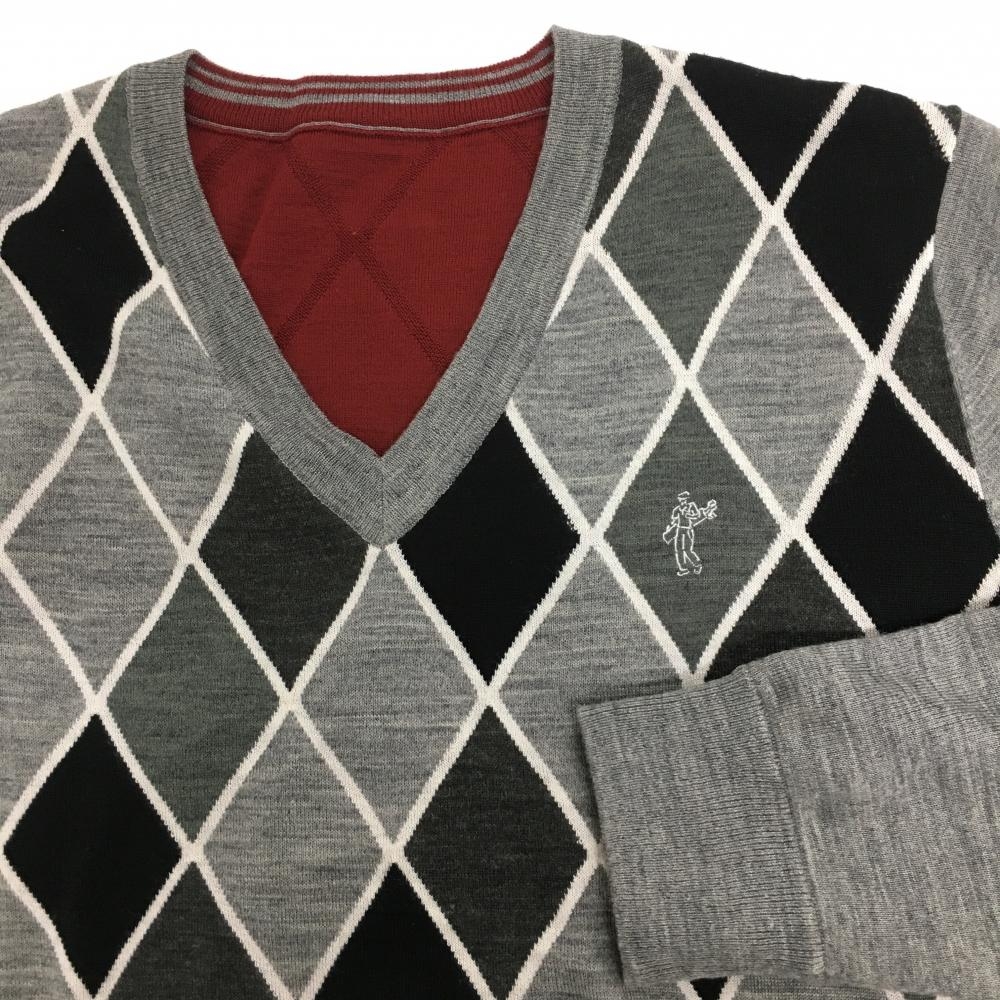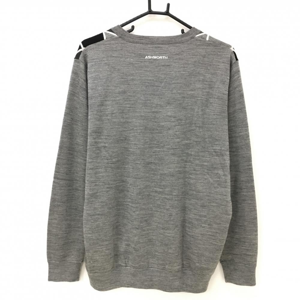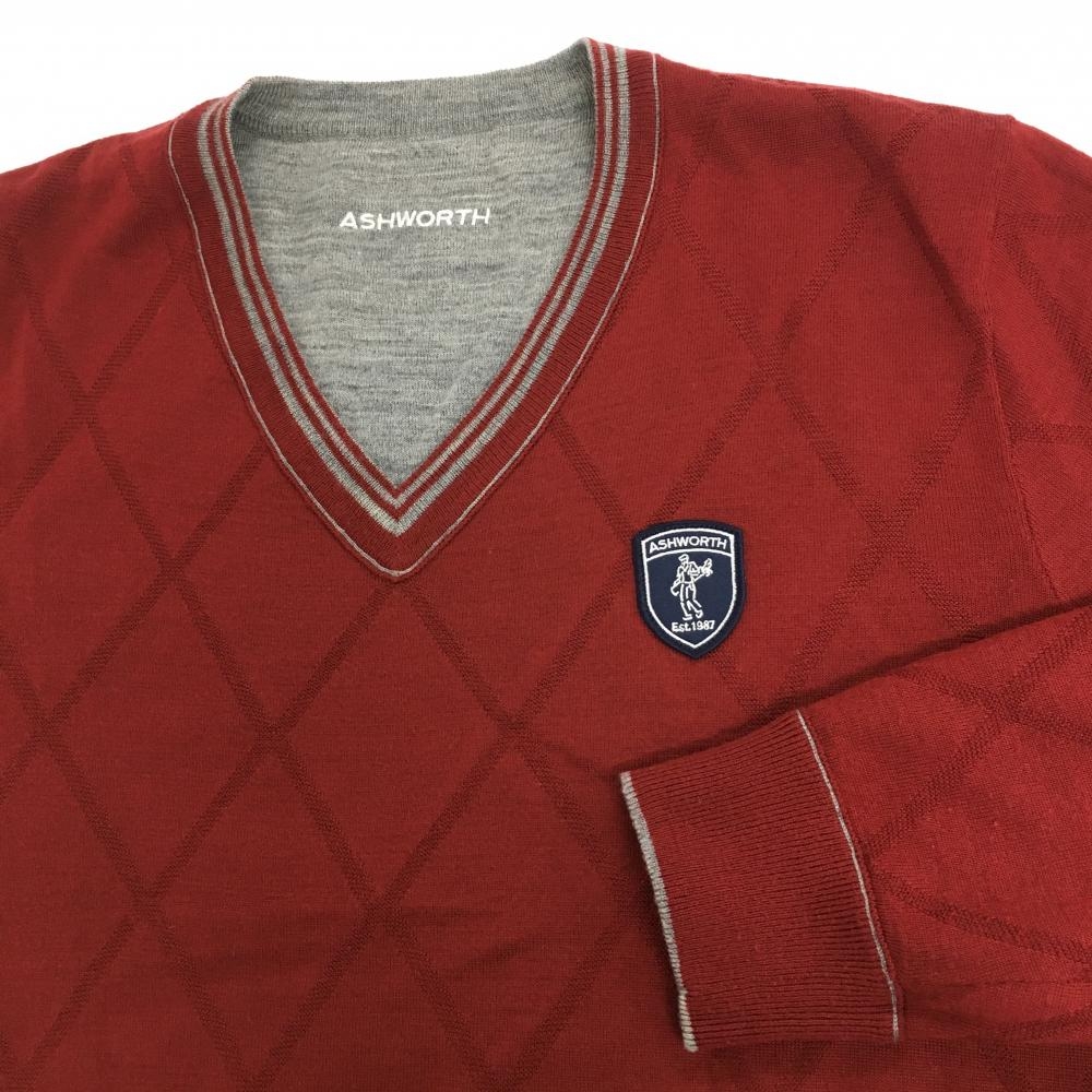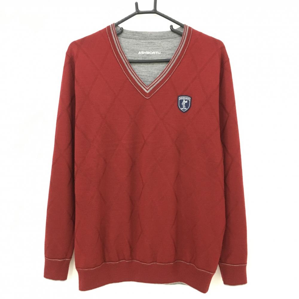 【美品】アシュワース リバーシブルセーター グレー×黒 前身頃ダイヤ柄 裏ボルドー ニット メンズ ゴルフウェア ASHWORTH