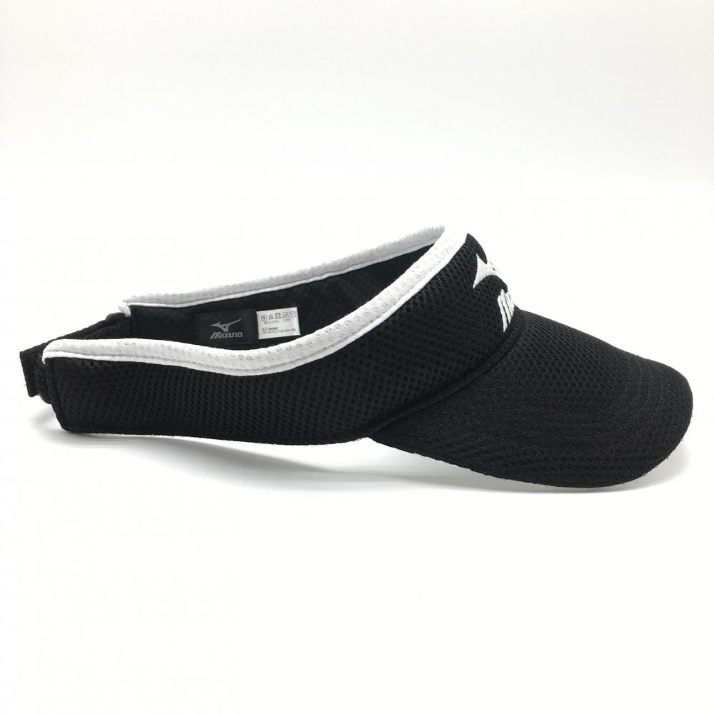 【超美品】ミズノ サンバイザー 黒×白 メッシュ地 ロゴ刺しゅう F(56-60cm) ゴルフウェア MIZUNO