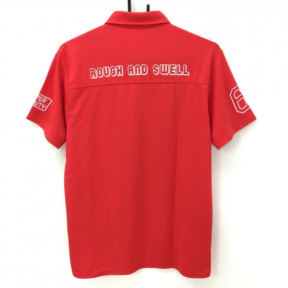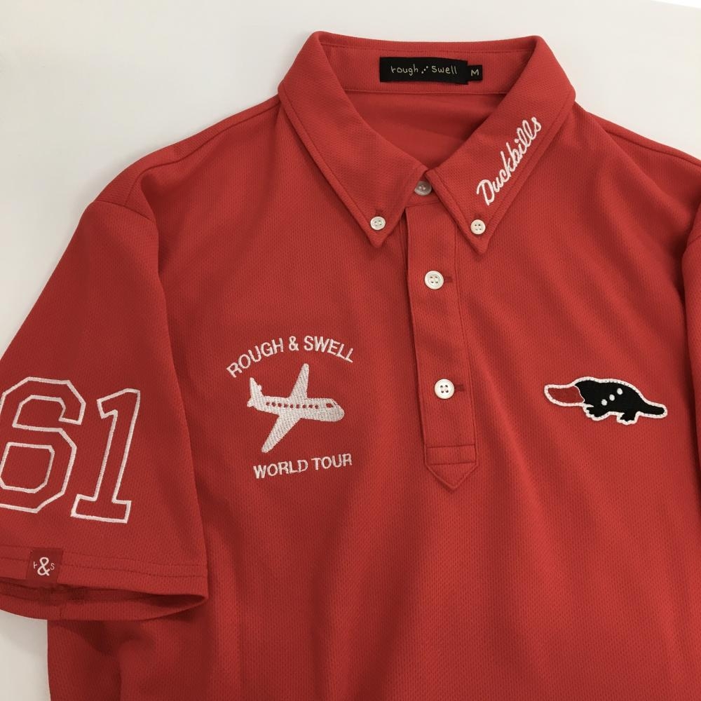 【超美品】ラフアンドスウェル 半袖ポロシャツ レッド×白 ボタンダウン 飛行機刺しゅう メンズ M ゴルフウェア rough&swell