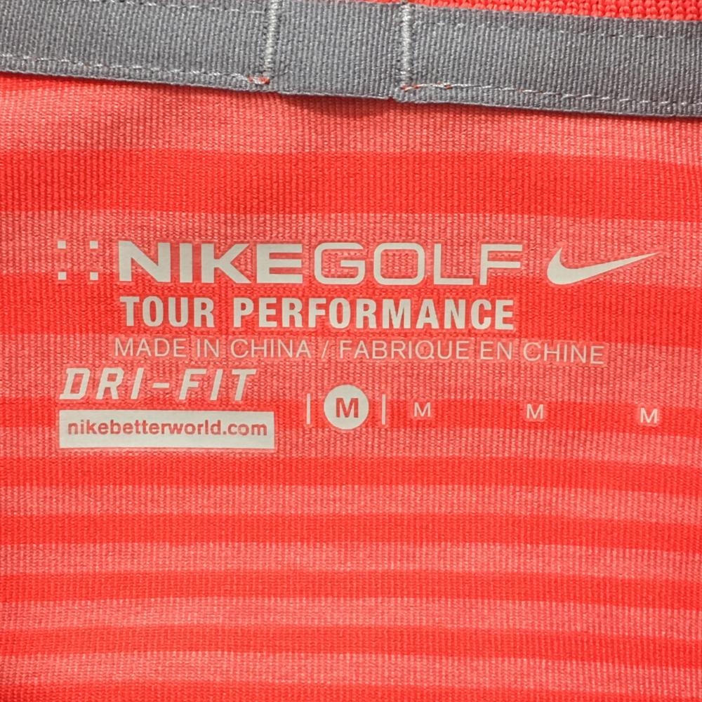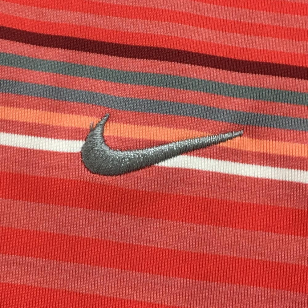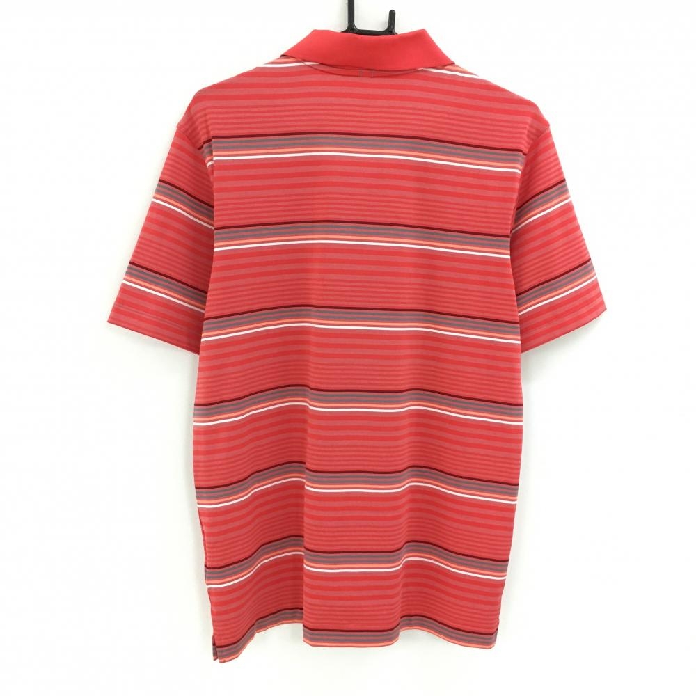 【超美品】ナイキ 半袖ポロシャツ レッド系×グレー ボーダー DRYFIT メンズ M ゴルフウェア NIKE