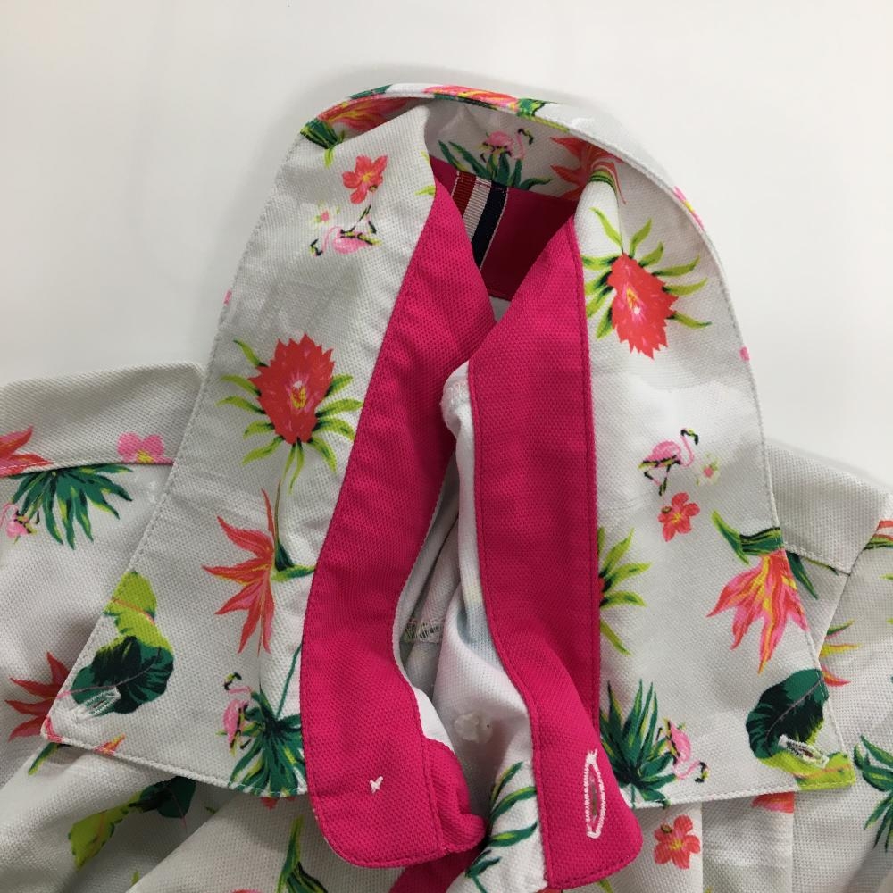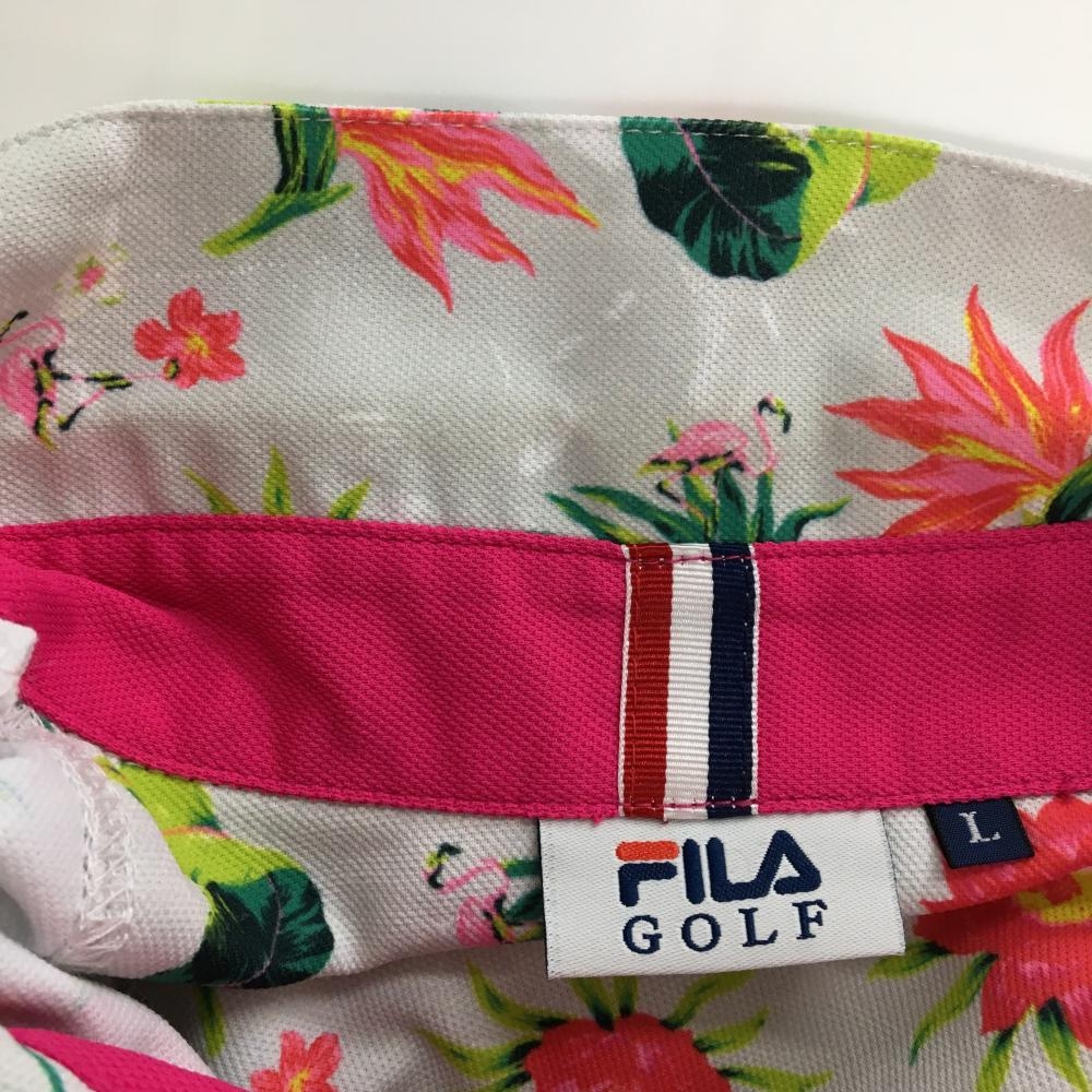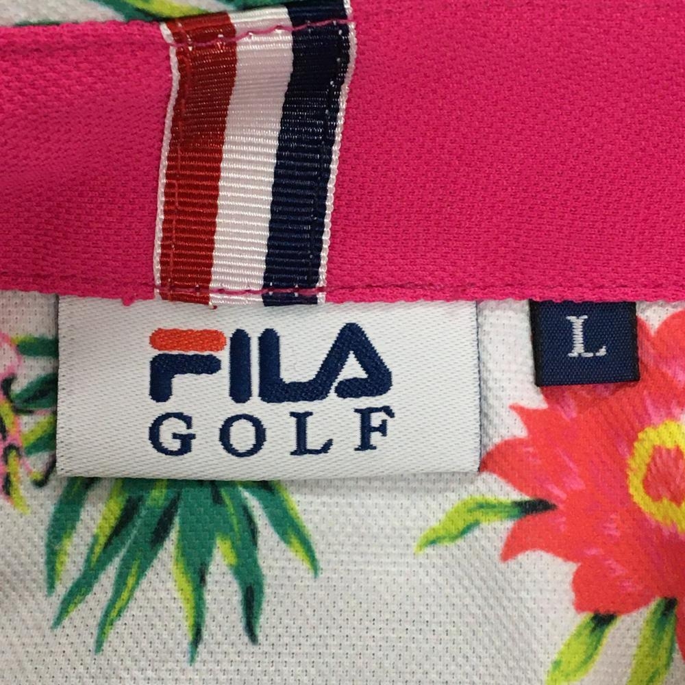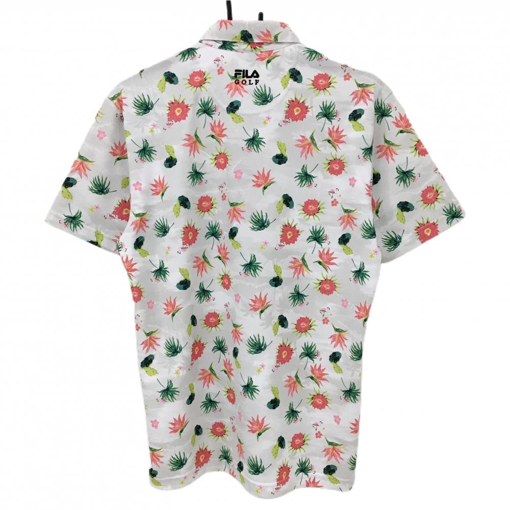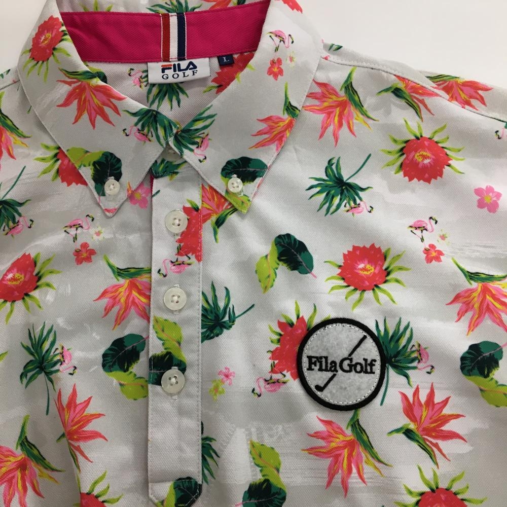 【美品】フィラゴルフ 半袖ポロシャツ ライトグレー×ピンクレッド 花柄 リーフ柄 メンズ L ゴルフウェア FILA GOLF