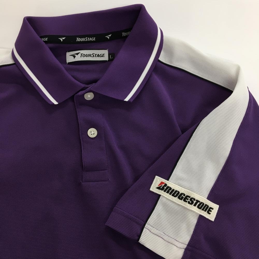ツアーステージ 半袖ポロシャツ パープル×白 肩・袖ライン メンズ L ゴルフウェア TOURSTAGE