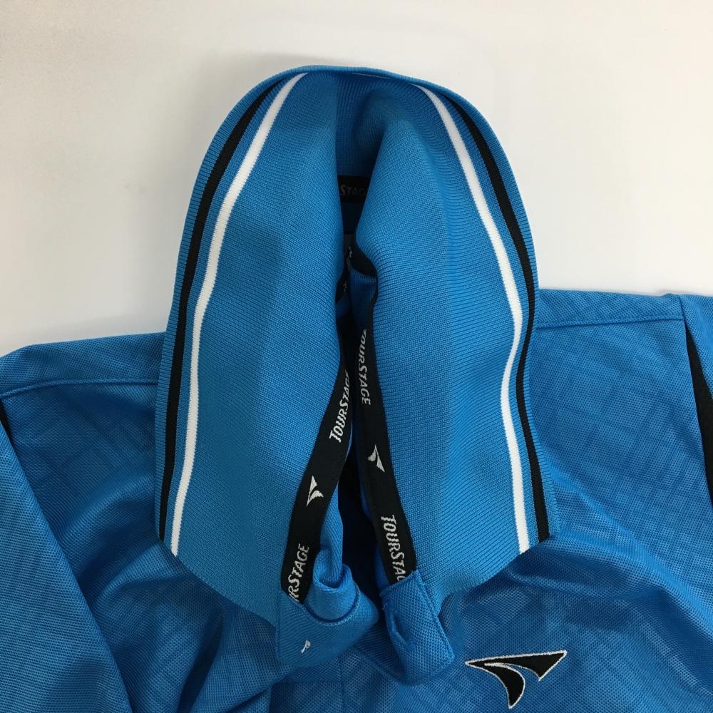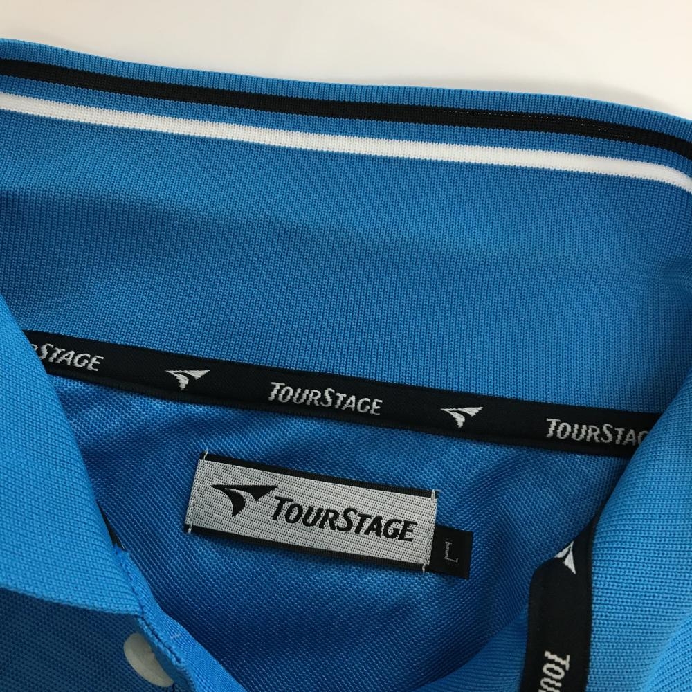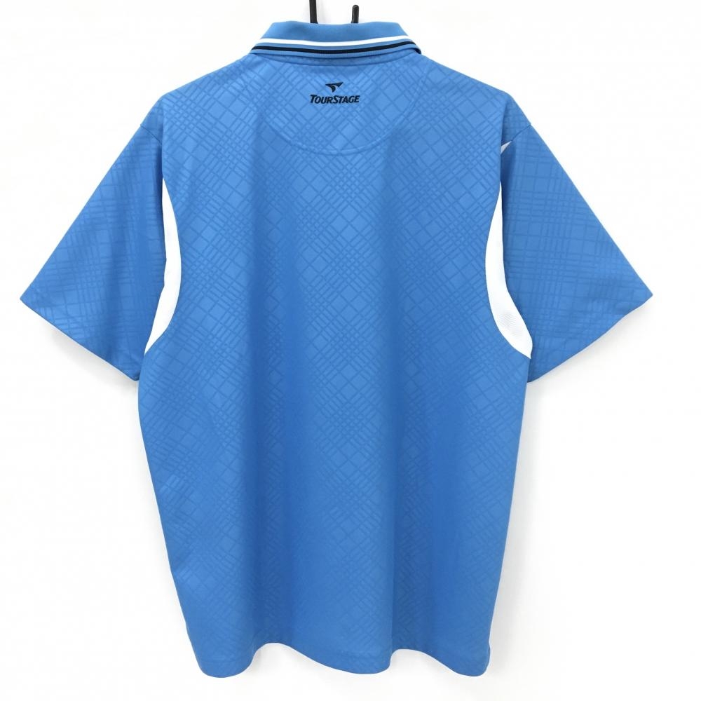 ツアーステージ 半袖ポロシャツ ブルー 斜め格子地模様 メンズ L ゴルフウェア TOURSTAGE