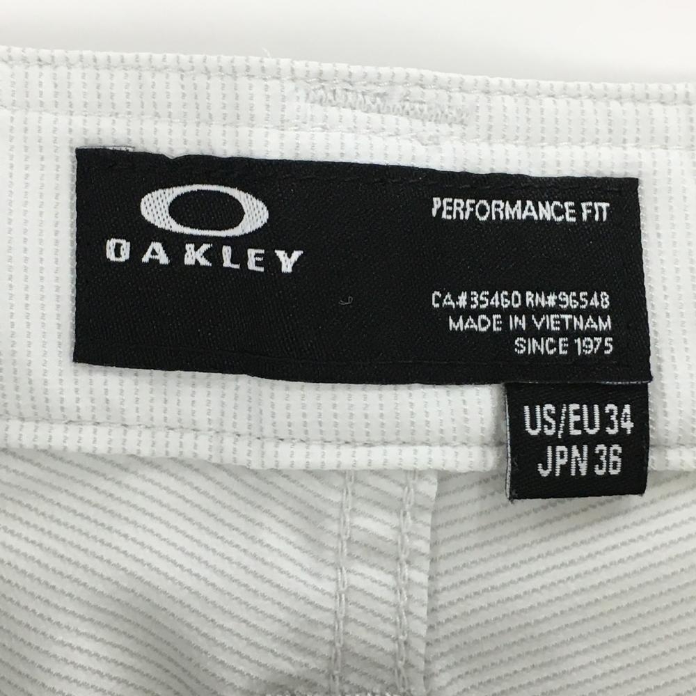 【美品】オークリー パンツ 白×ライトグレー 地模様 ロゴ刺しゅう ティー装着可 メンズ 36 ゴルフウェア Oakley