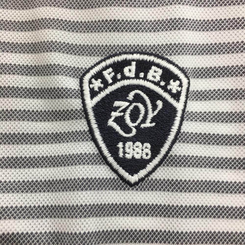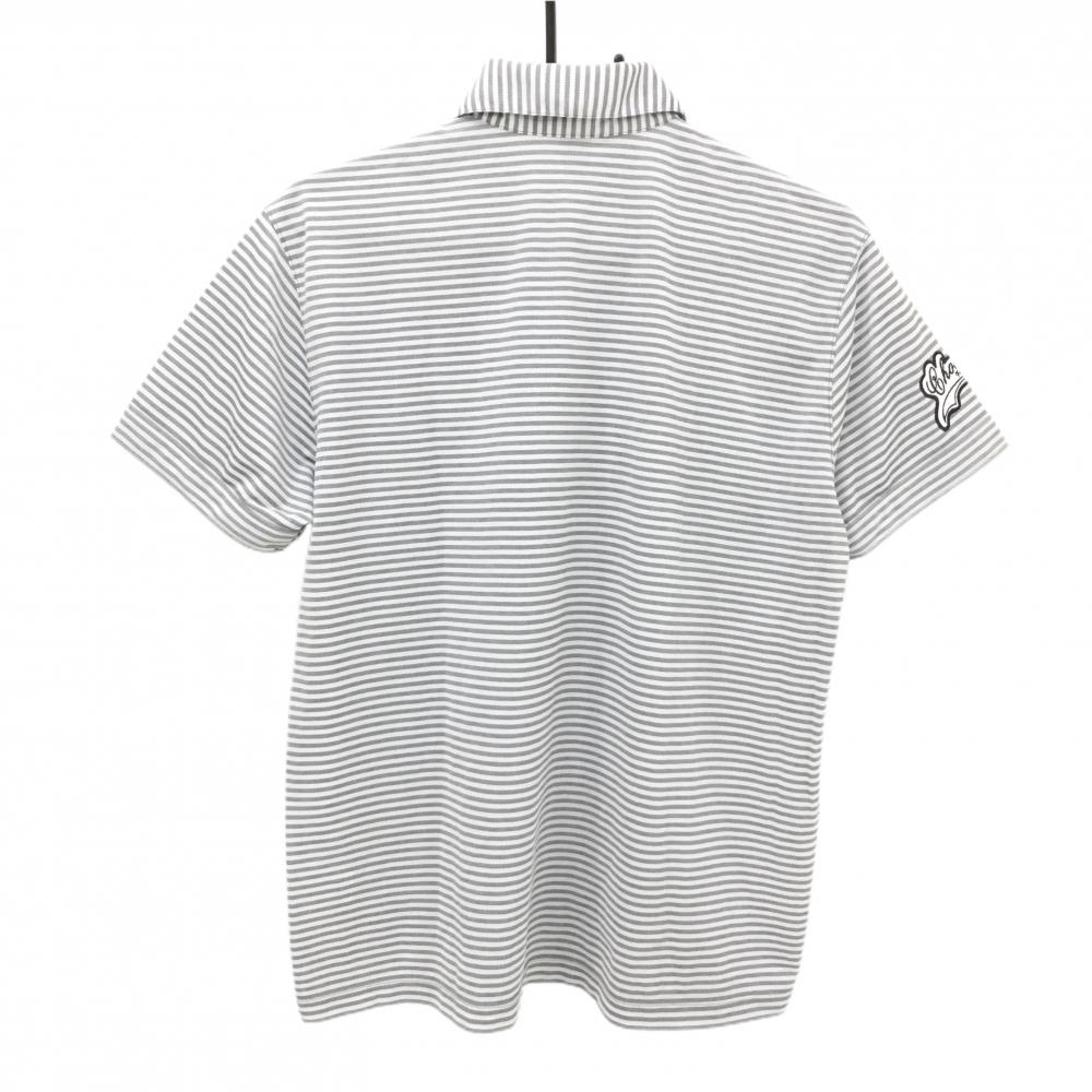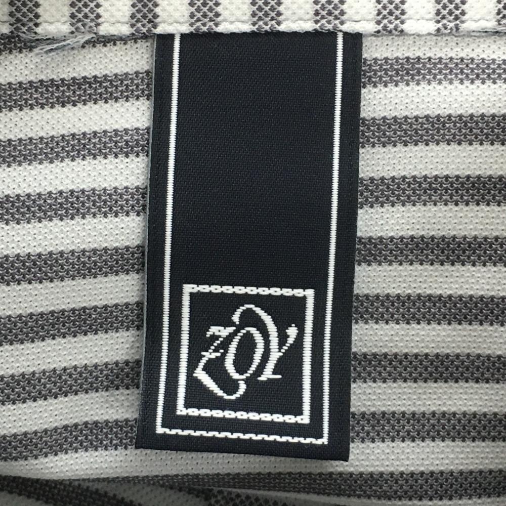 【超美品】ゾーイ 半袖ポロシャツ 白×グレー ボーダー ロゴ刺しゅう メンズ 2(M) ゴルフウェア ZOY