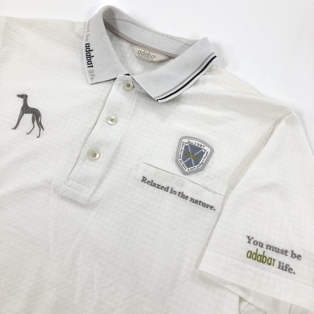 アダバット 半袖ポロシャツ 白 織生地 胸ポケット メンズ 48(L) ゴルフウェア adabat