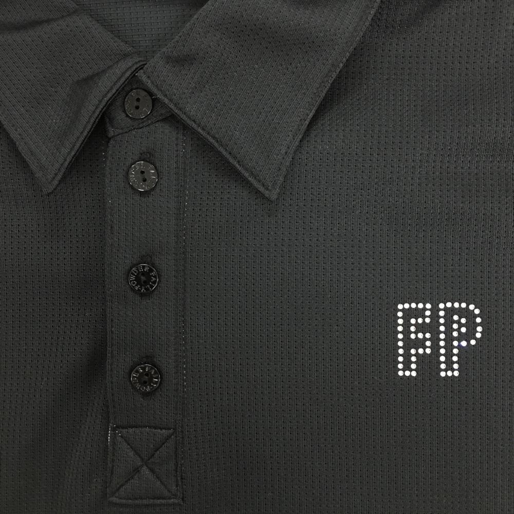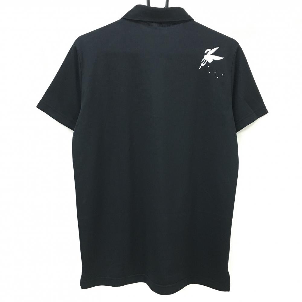 【超美品】フェアリーパウダー 半袖ポロシャツ 黒 メッシュ調生地 ラインストーンロゴ メンズ L ゴルフウェア FAIRY POWDER
