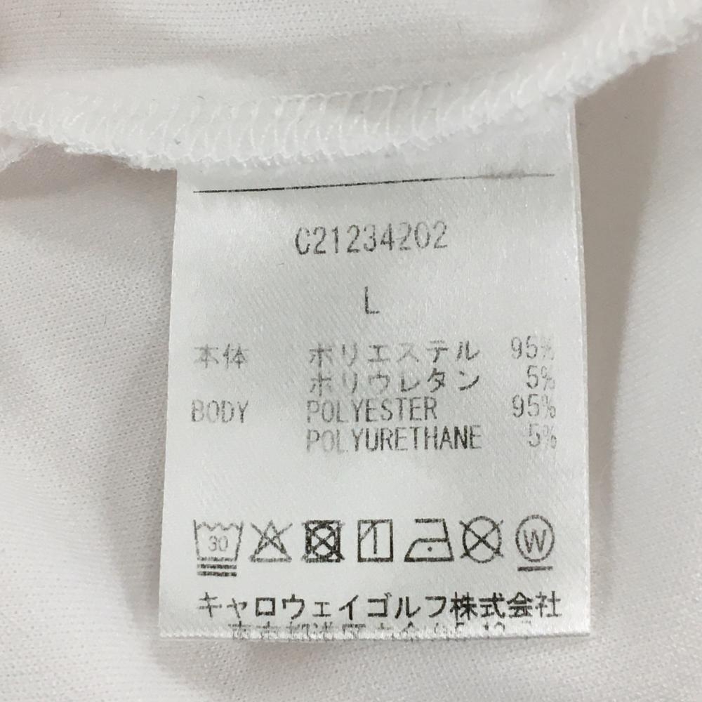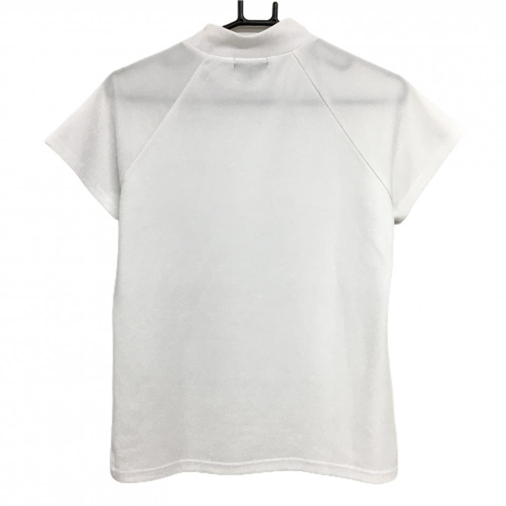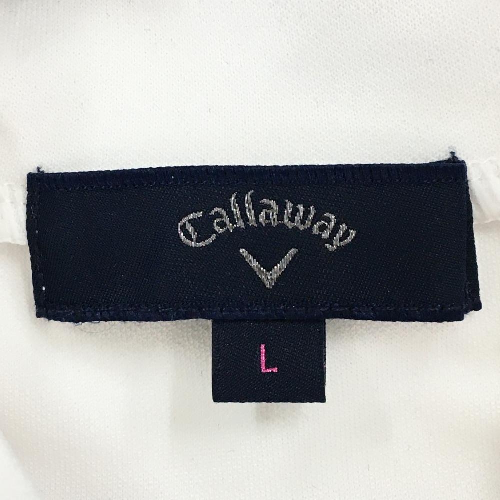 【超美品】キャロウェイ 半袖ハイネックシャツ 白×ライトグレー 袖ロゴ レディース L ゴルフウェア Callaway