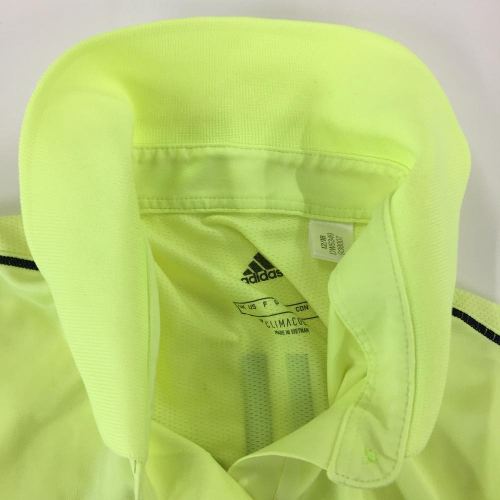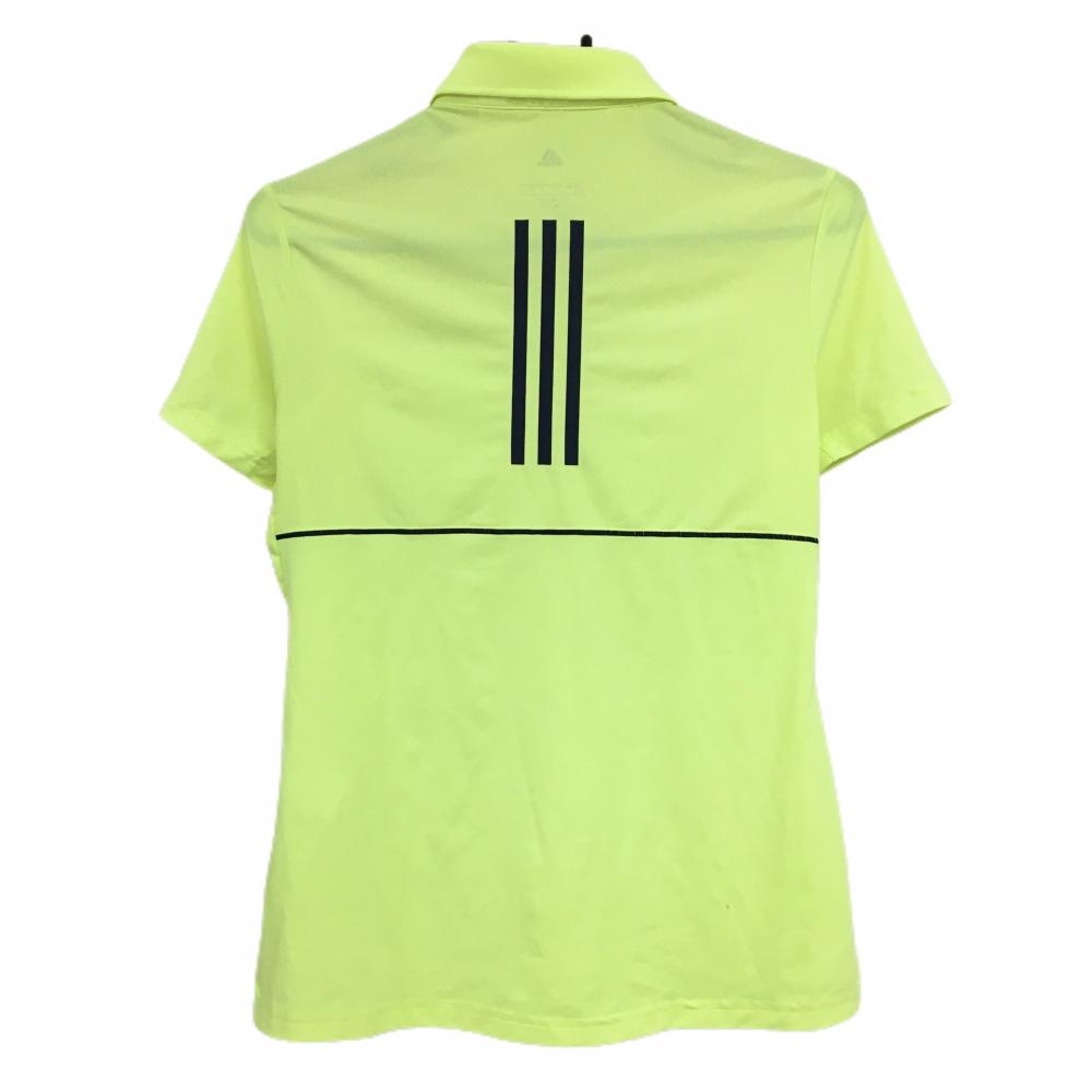 アディダス 半袖ポロシャツ 蛍光イエロー ボタンダウン 後ろ3ライン レディース L ゴルフウェア adidas