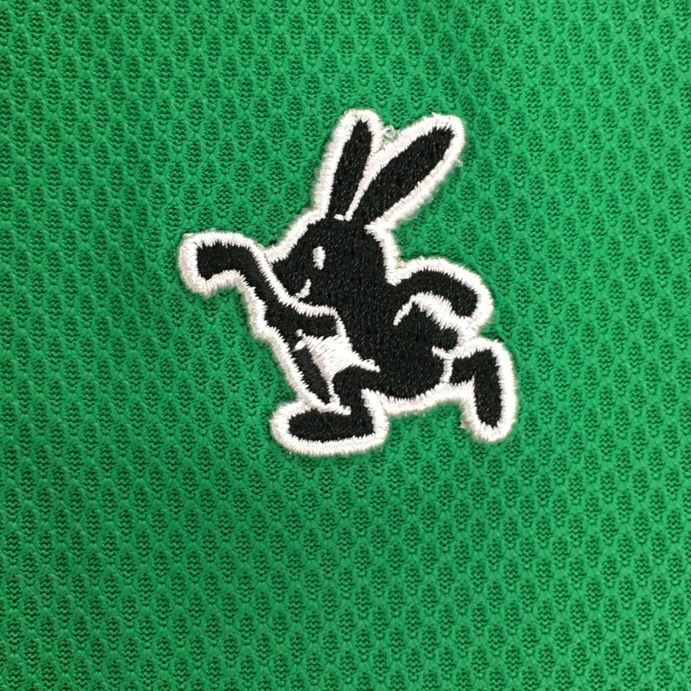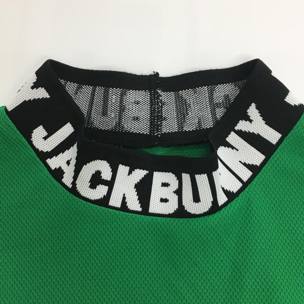 【超美品】ジャックバニー 半袖ハイネックシャツ グリーン×黒 ネックロゴ メンズ 4(M) ゴルフウェア 2023年モデル Jack Bunny