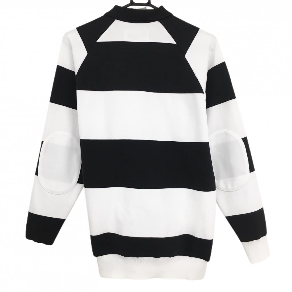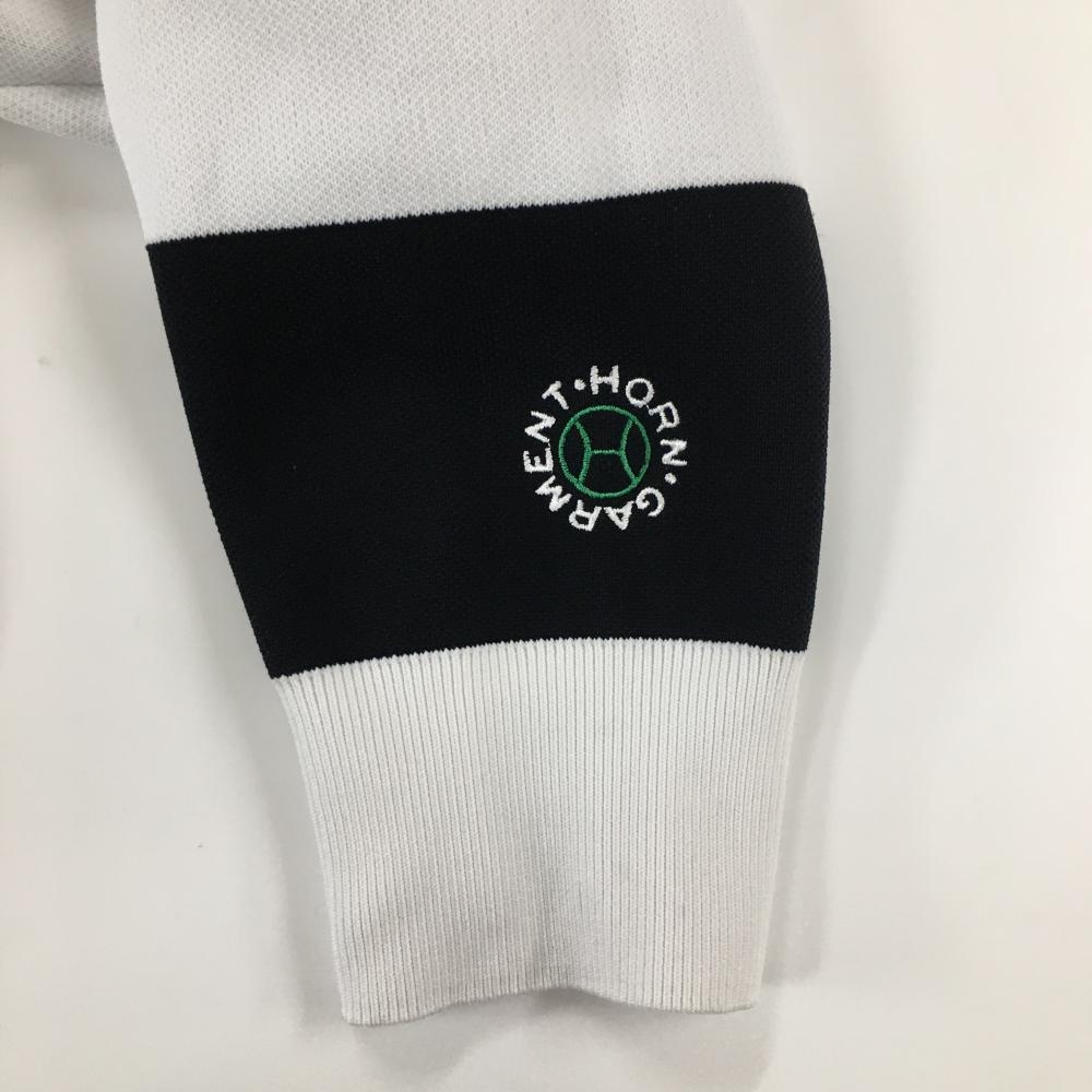 【美品】ホーンガーメント 長袖ニットポロシャツ 黒×白 ボーダー マークアンドロナ メンズ 48(L) ゴルフウェア MARK&LONA