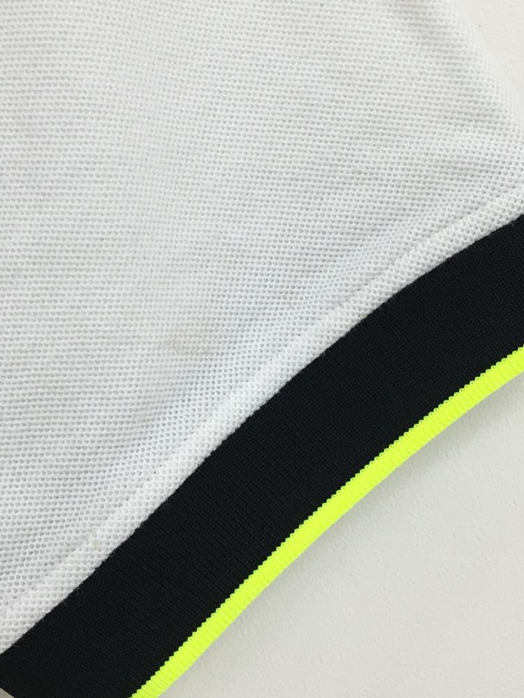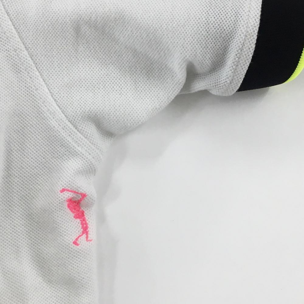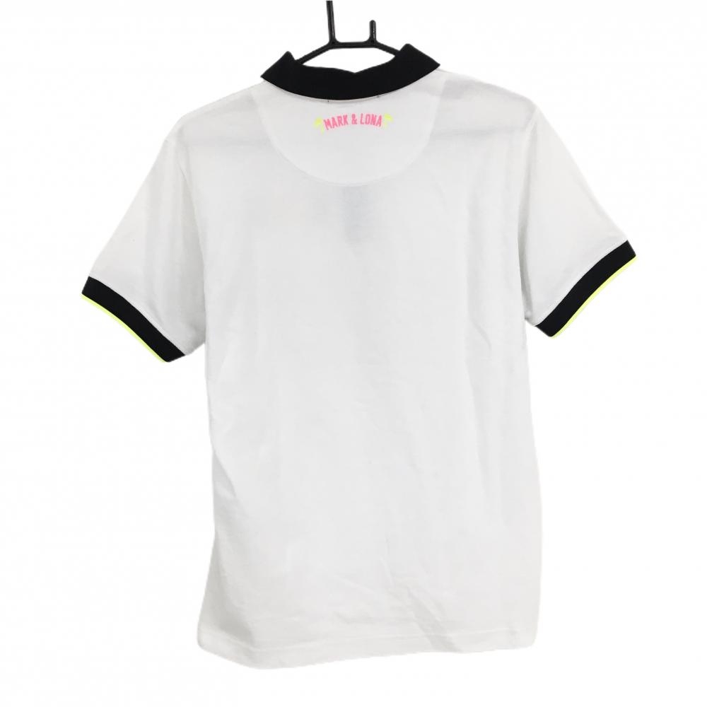 【美品】マークアンドロナ 半袖ポロシャツ 白×黒×蛍光イエロー スカル メンズ 48(L) ゴルフウェア MARK&LONA