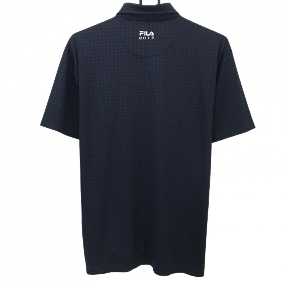 【超美品】フィラゴルフ 半袖ポロシャツ ネイビー 千鳥格子 ボタンダウン メンズ LL ゴルフウェア FILA GOLF