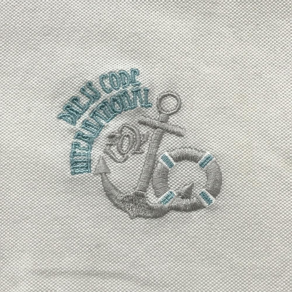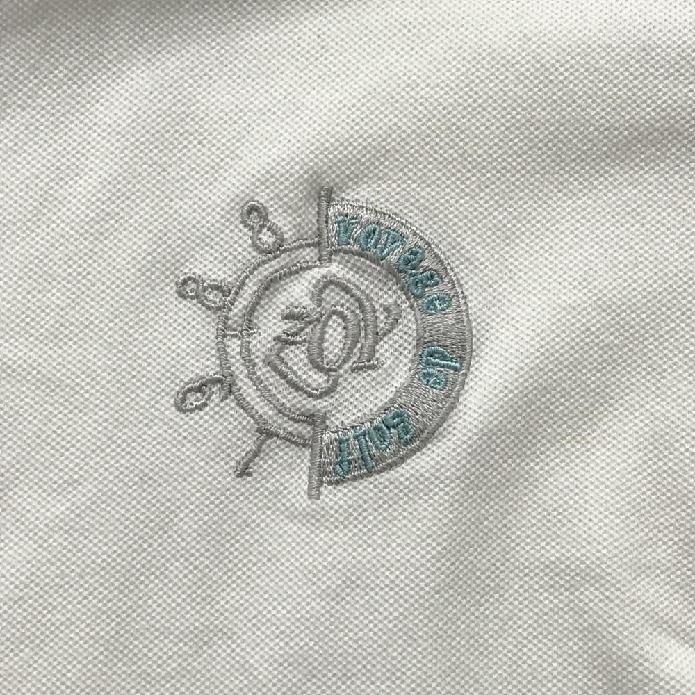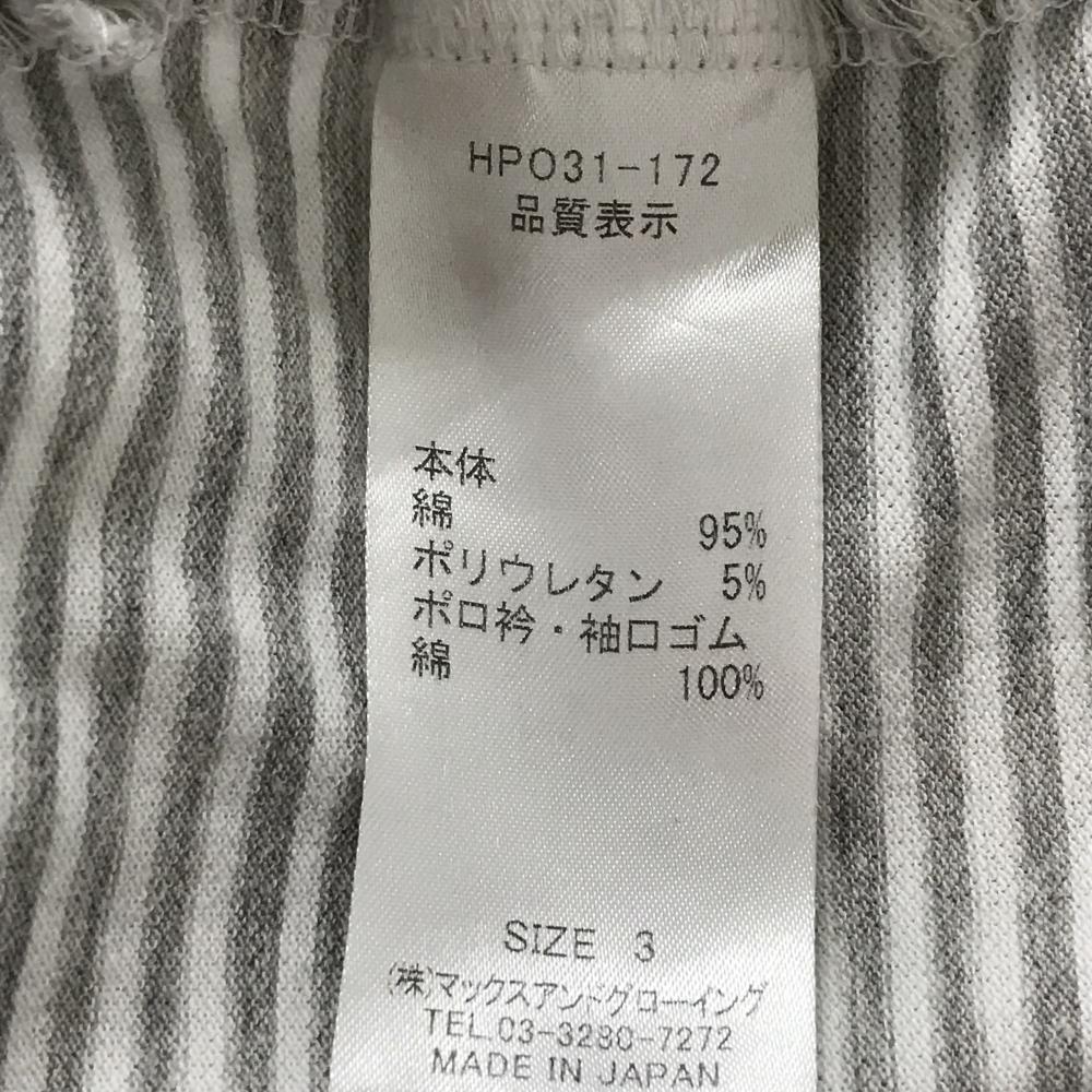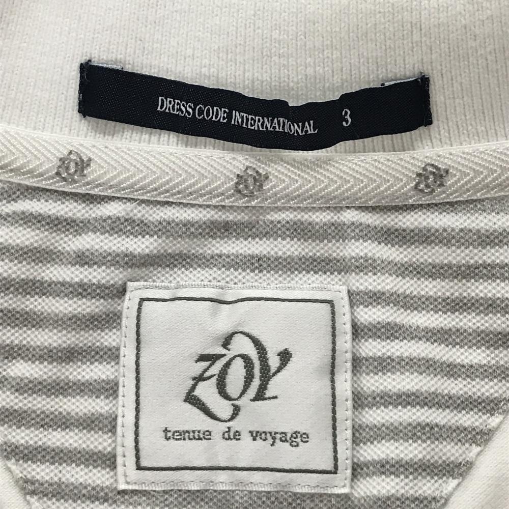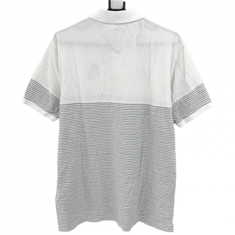 【美品】ゾーイ 半袖ポロシャツ 白×グレー 一部ボーダー 胸ロゴ メンズ 3(L) ゴルフウェア ZOY