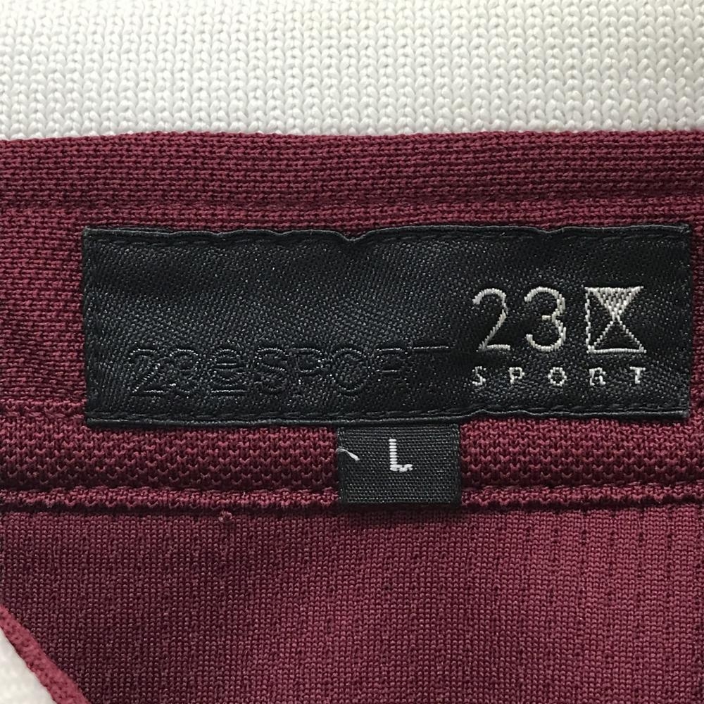 【美品】23区スポーツ 半袖ポロシャツ ピンク×ボルドー ボーダー MANGILAO GOLF CLUB メンズ L ゴルフウェア 23区