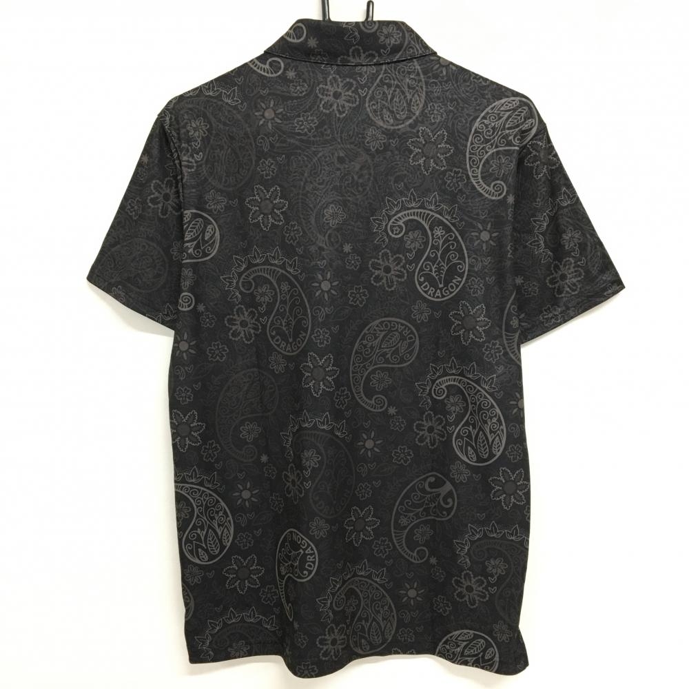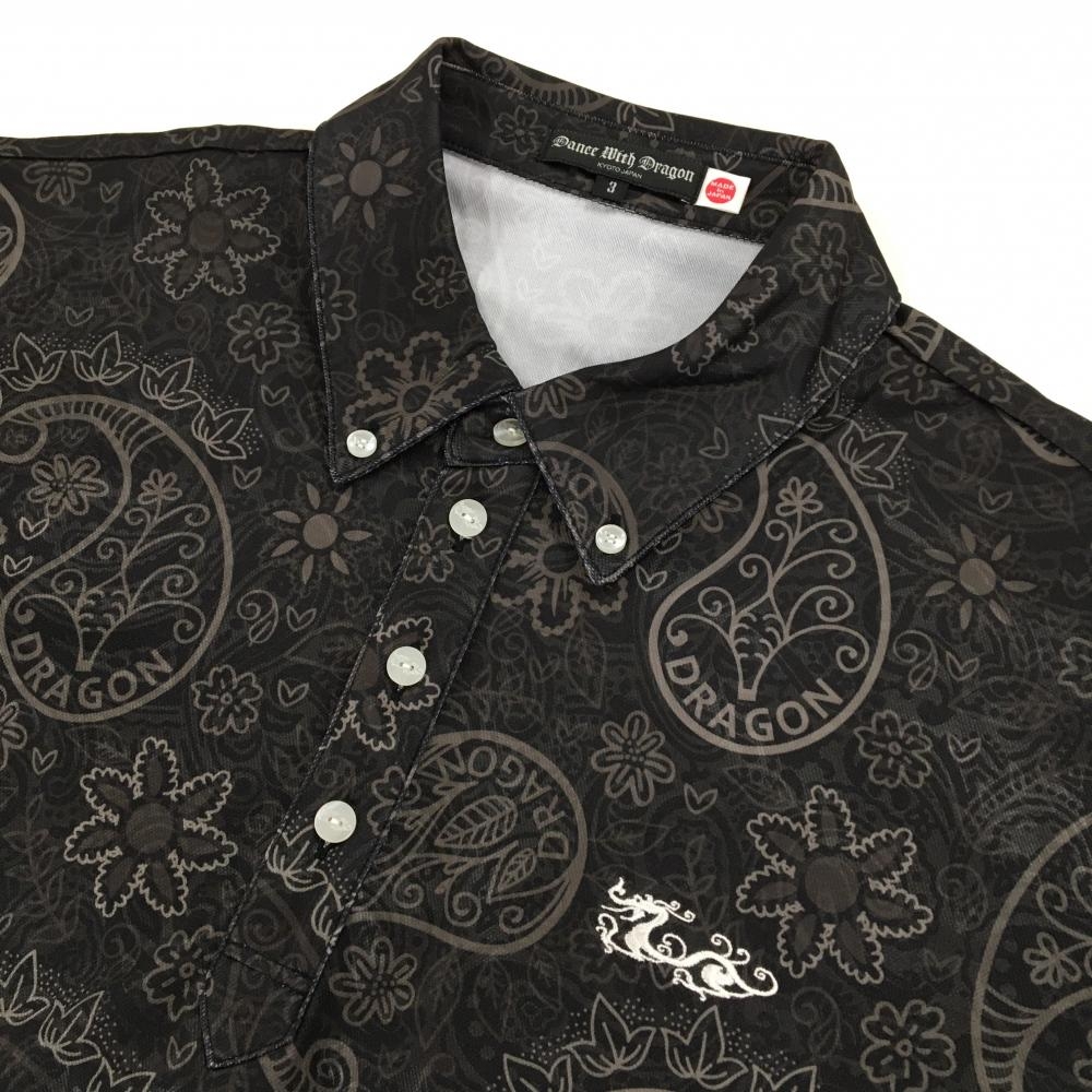 【超美品】ダンスウィズドラゴン 半袖ポロシャツ 黒×グレー ペイズリー総柄 ボタンダウン メンズ 3(L) ゴルフウェア Dance With Dragon