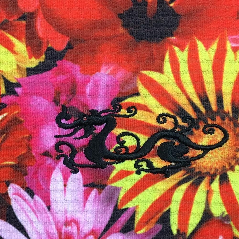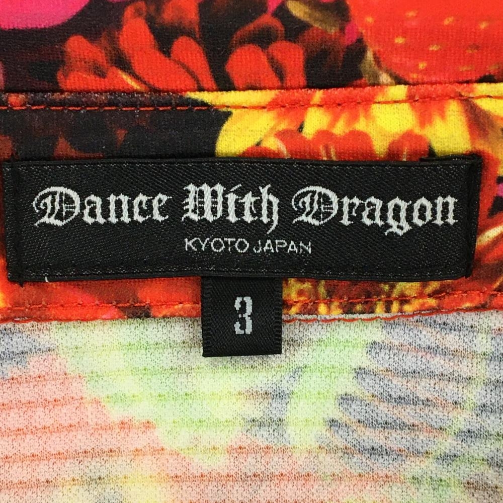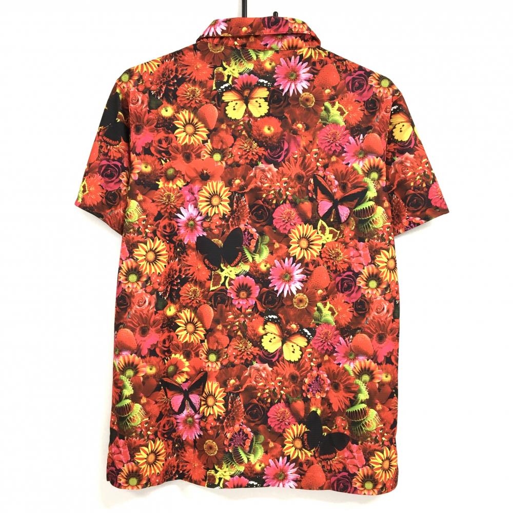 【超美品】ダンスウィズドラゴン 半袖ポロシャツ レッド×マルチカラー 花柄 ロゴ刺しゅう メンズ 3(L) ゴルフウェア Dance With Dragon