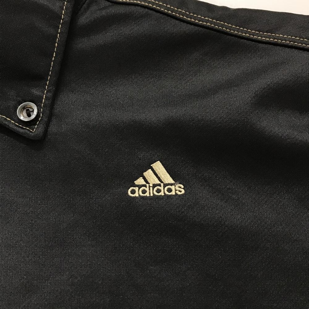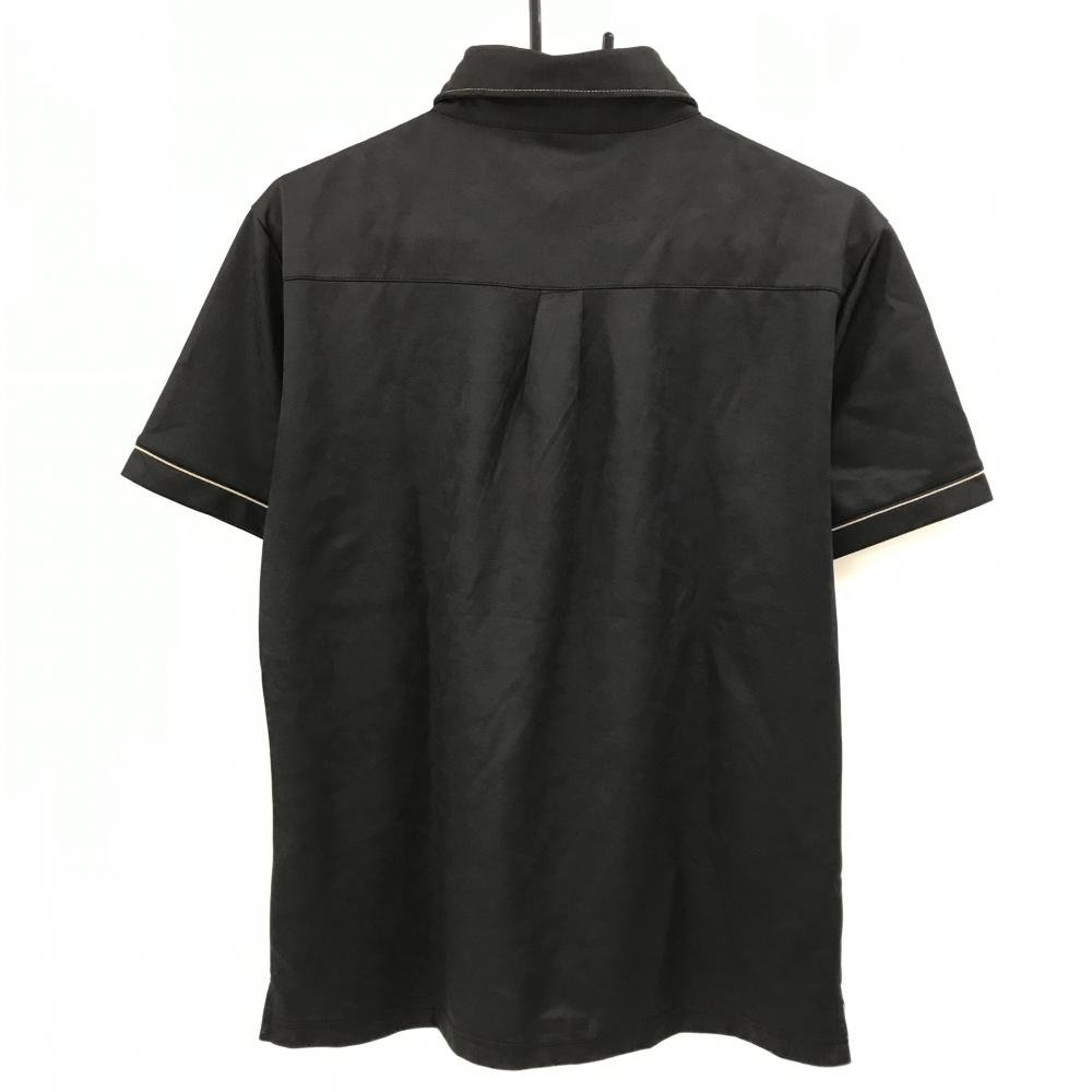 【美品】アディダス 半袖ポロシャツ 黒 カモフラ調地模様 ボタンダウン メンズ L/G ゴルフウェア adidas