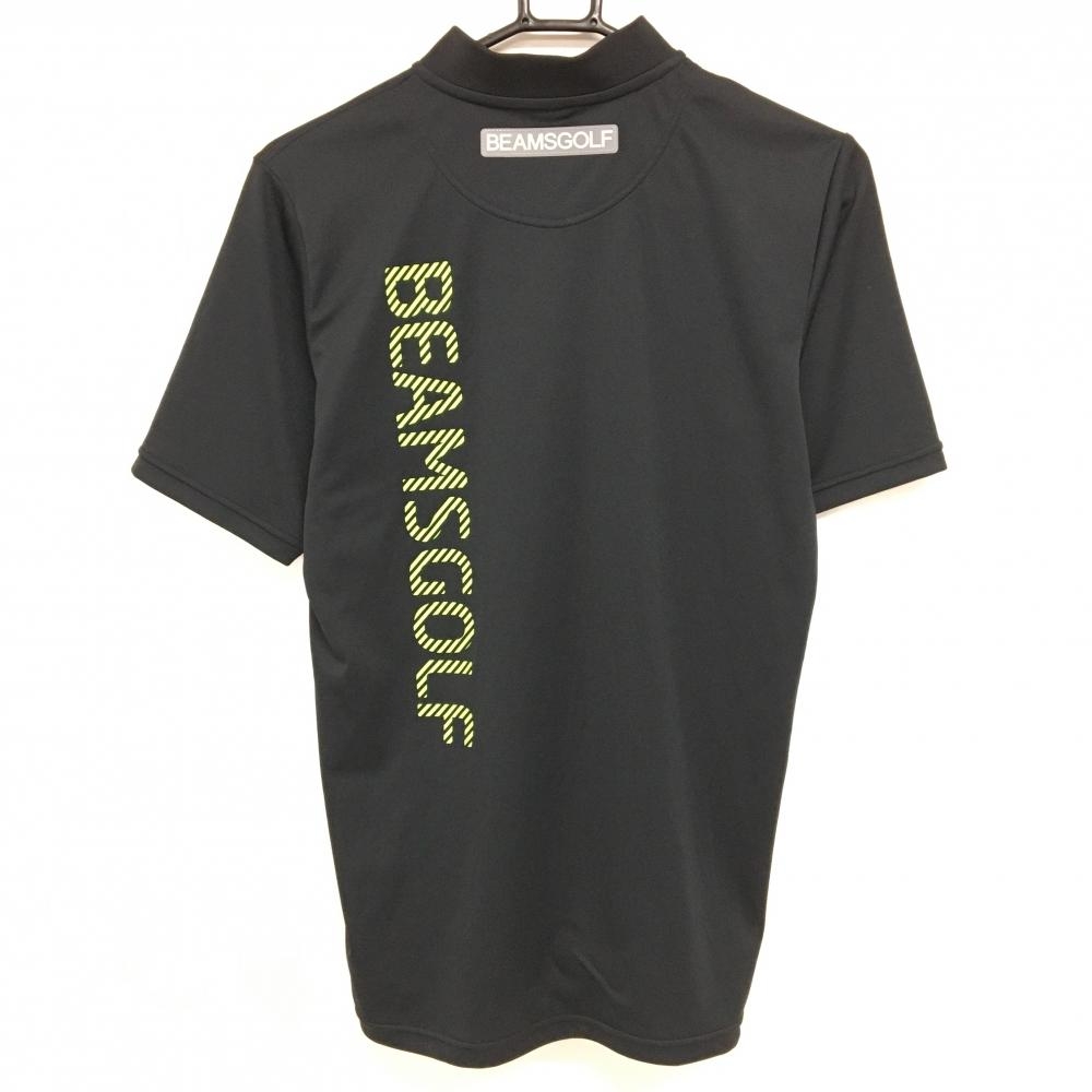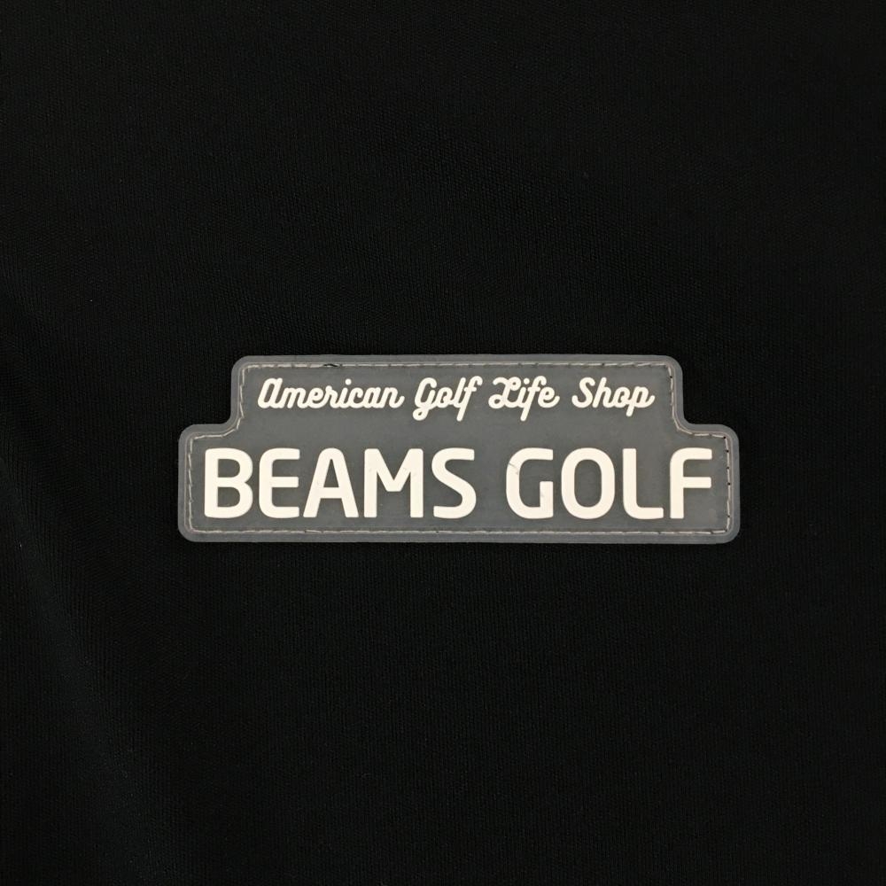【超美品】ビームスゴルフ 半袖ポロシャツ 黒 シリコンワッペン 袖ロゴ刺しゅう スタンドカラー メンズ S ゴルフウェア BEAMS GOLF