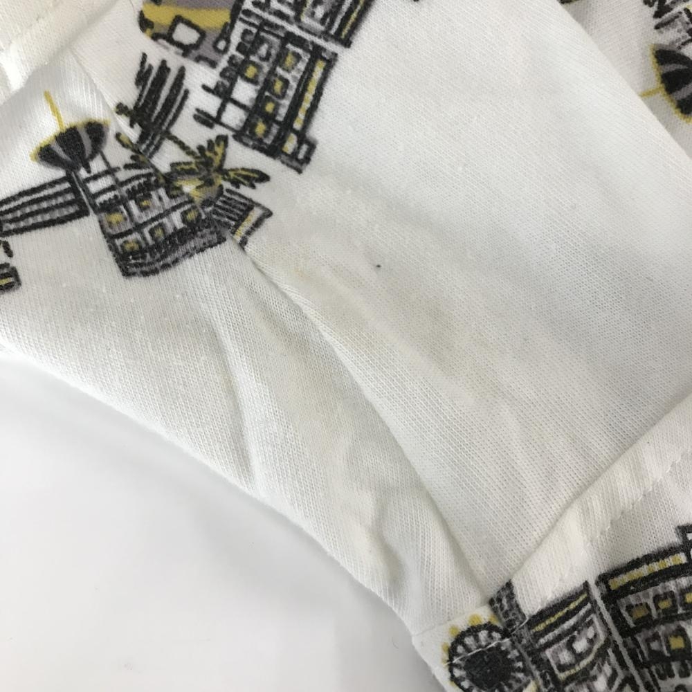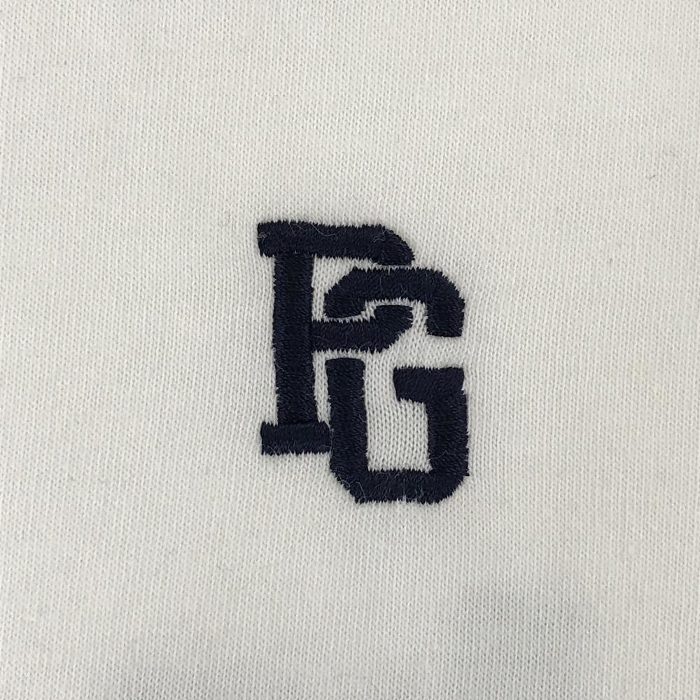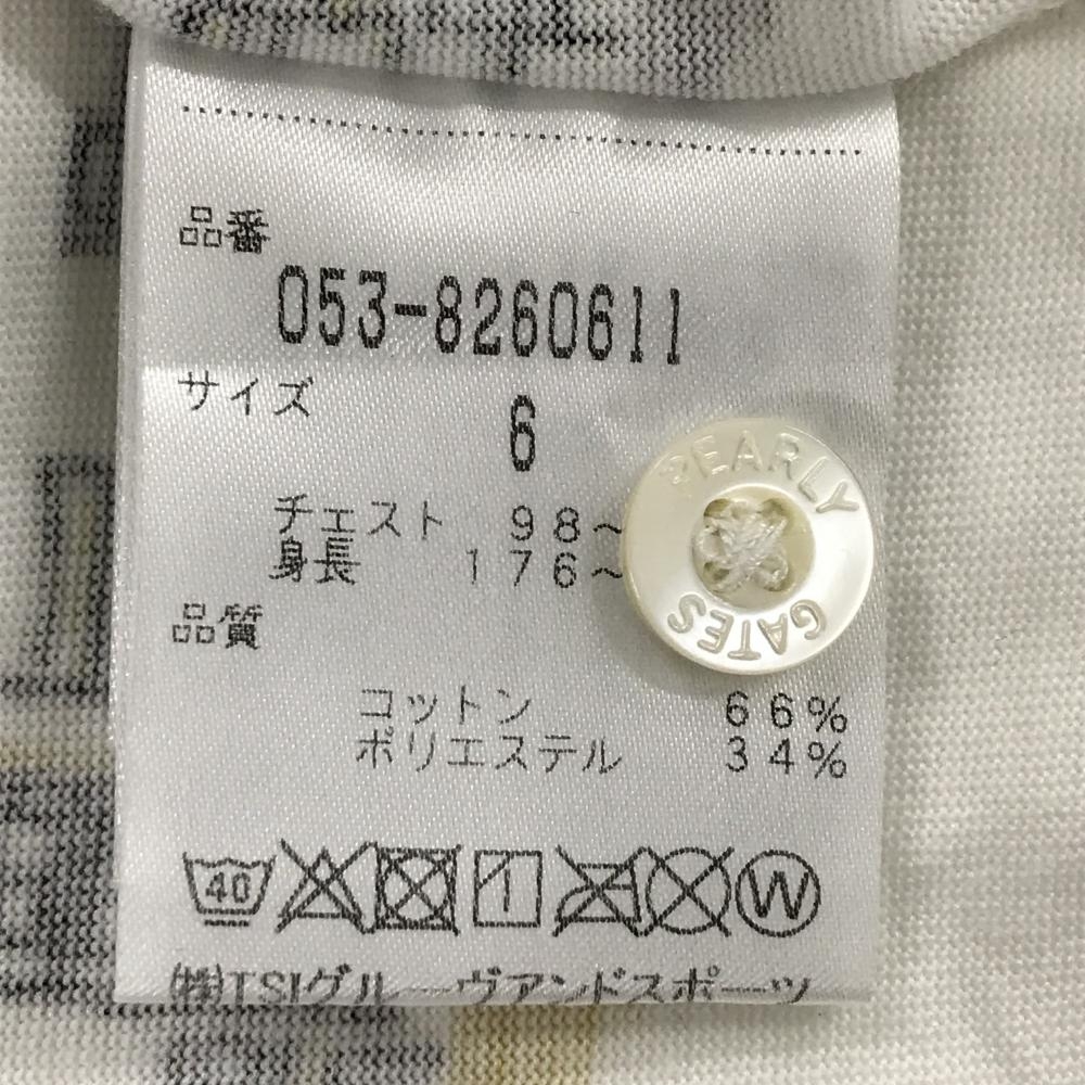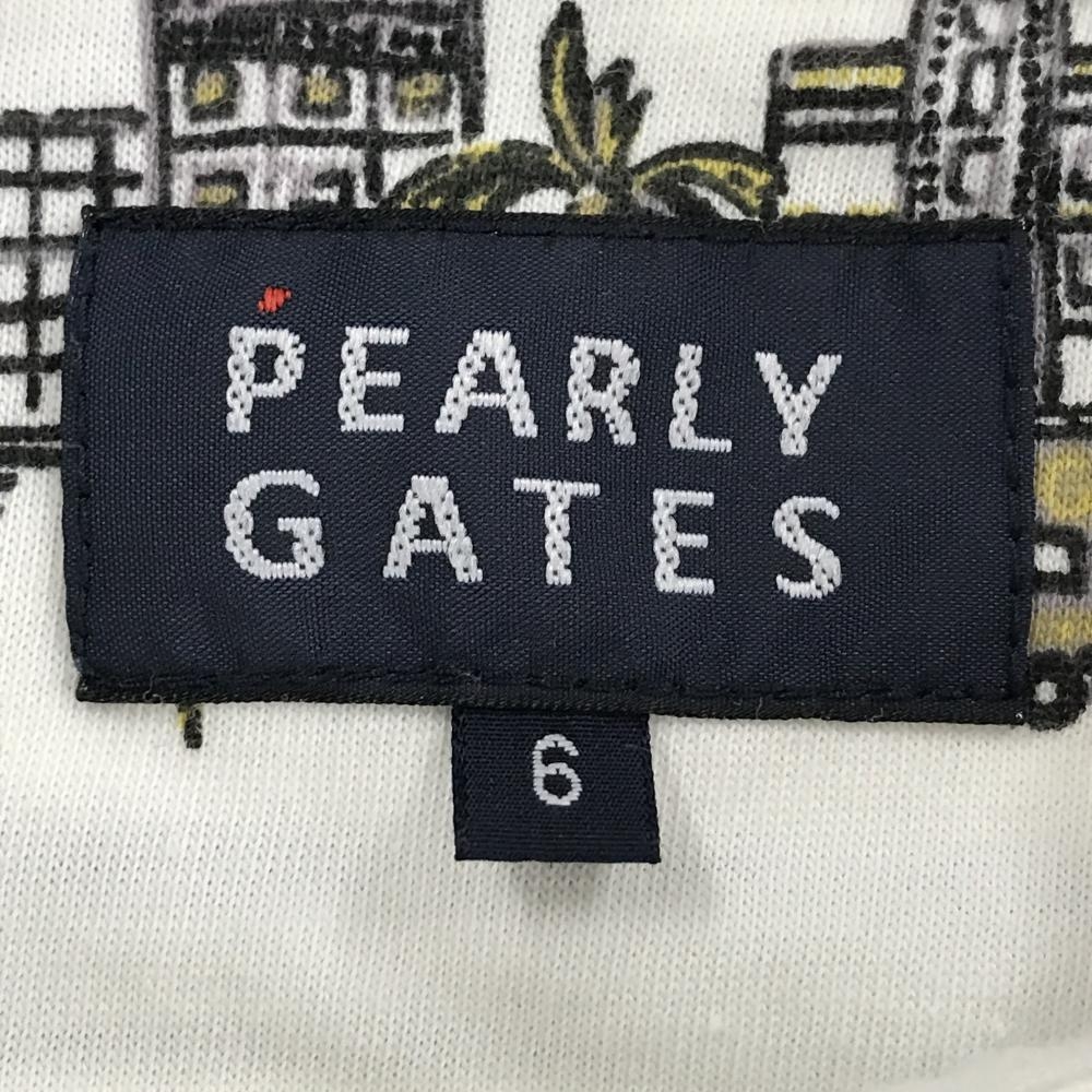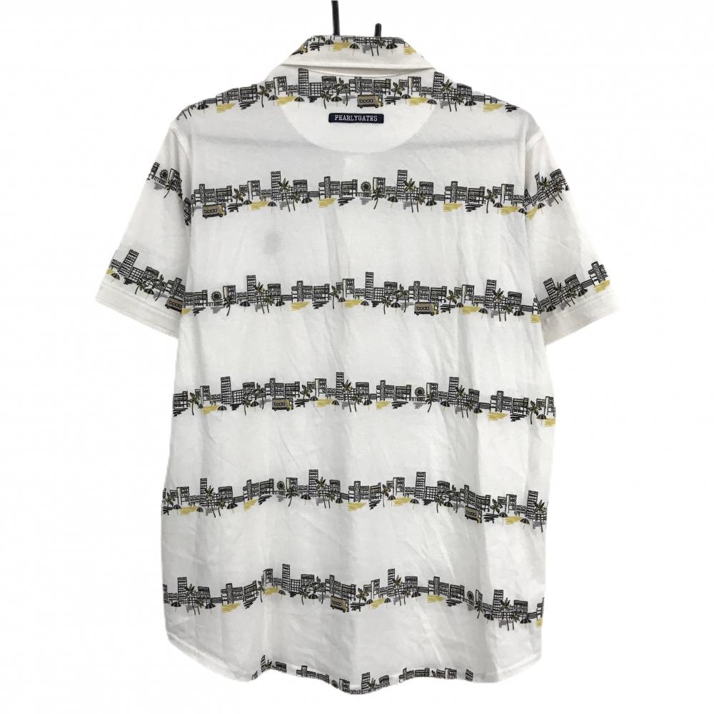 パーリーゲイツ 半袖ポロシャツ 白×グレー系 ボーダー風 ヤシの木 ビル メンズ 6(XL) ゴルフウェア PEARLY GATES