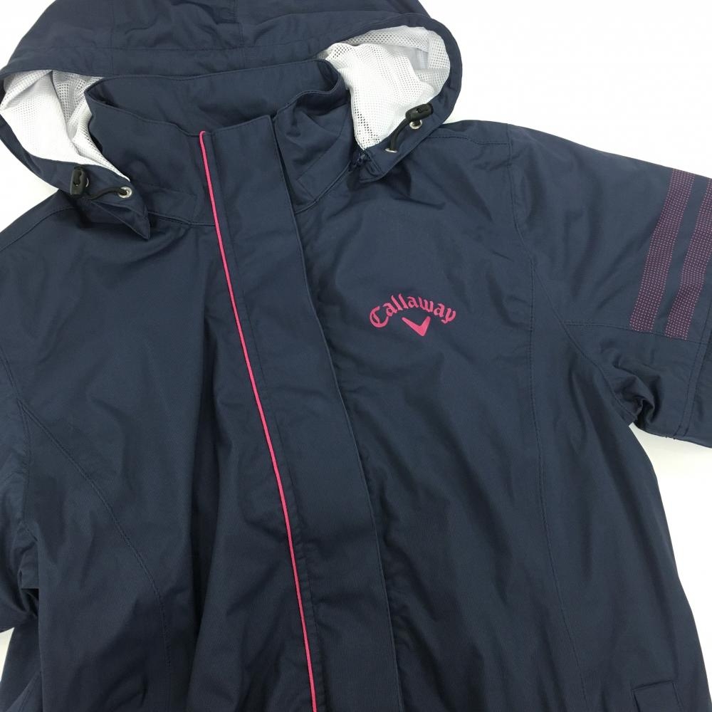【超美品】キャロウェイ 4WAYレインワンピース ネイビー×ピンク 裏地メッシュ レディース S ゴルフウェア Callaway