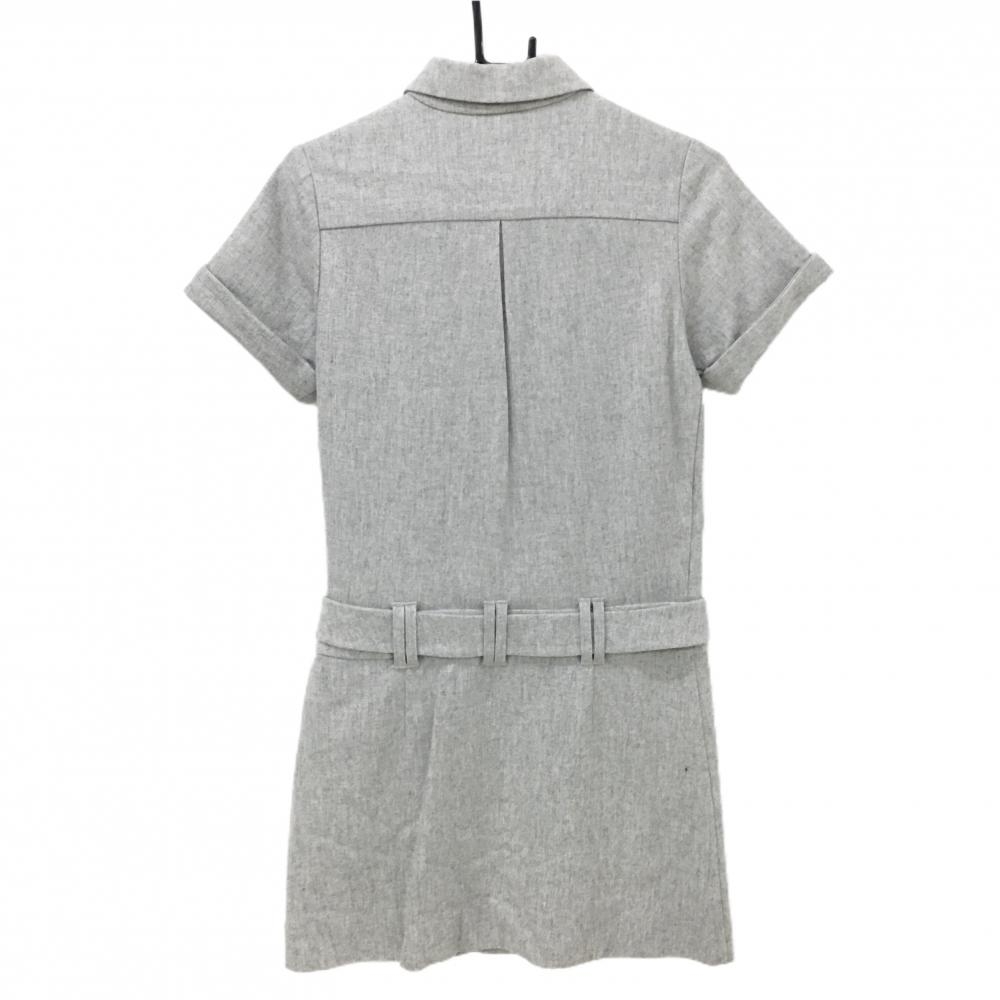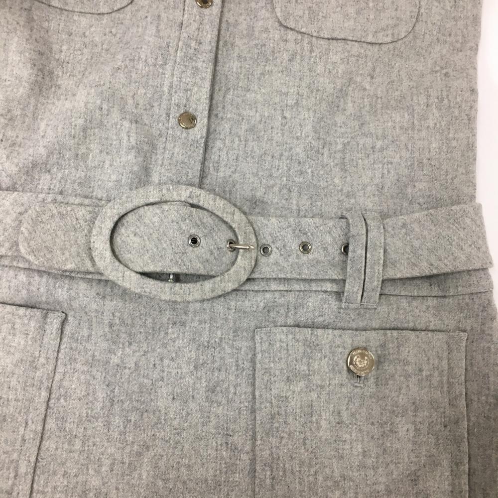 【超美品】マークアンドロナ 半袖ポロワンピース ライトグレー ウール混 裏地付 共布ベルト付き レディース S ゴルフウェア MARK&LONA
