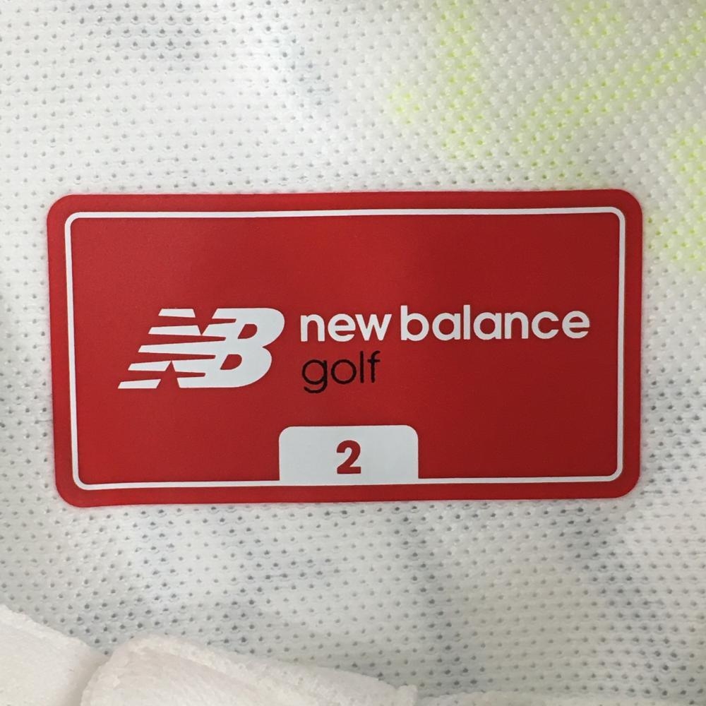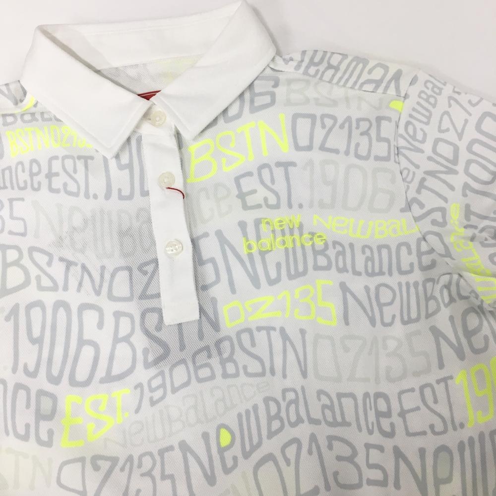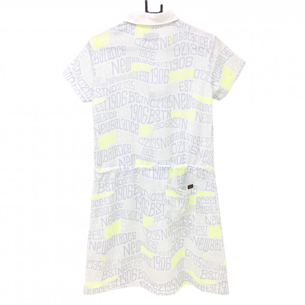 【新品】ニューバランスゴルフ 半袖ポロワンピース 白×グレー×蛍光イエロー 総柄 レディース 2(L) ゴルフウェア New Balance