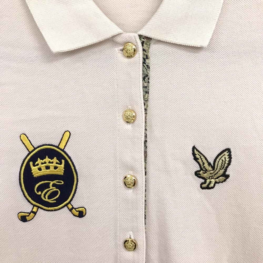 【美品】ライルアンドスコット 半袖ポロワンピース ベージュ 胸刺しゅう 共布ベルト付き レディース S ゴルフウェア Lyle&Scott