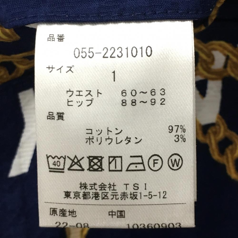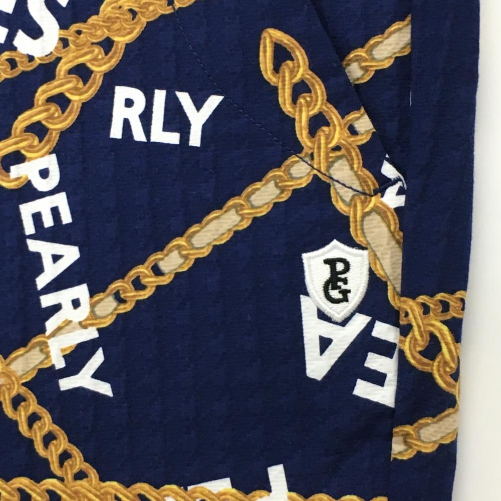 【新品】パーリーゲイツ パンツ ネイビー×ゴールド チェーン柄 織生地 レディース 1(M) ゴルフウェア PEARLY GATES