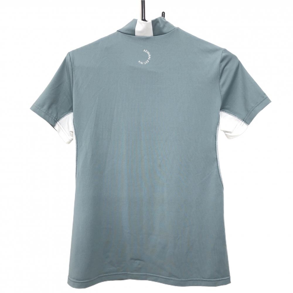 【美品】アドミラル 半袖ハイネックシャツ ブルーグレー×白 脇メッシュ調 レディース L ゴルフウェア Admiral