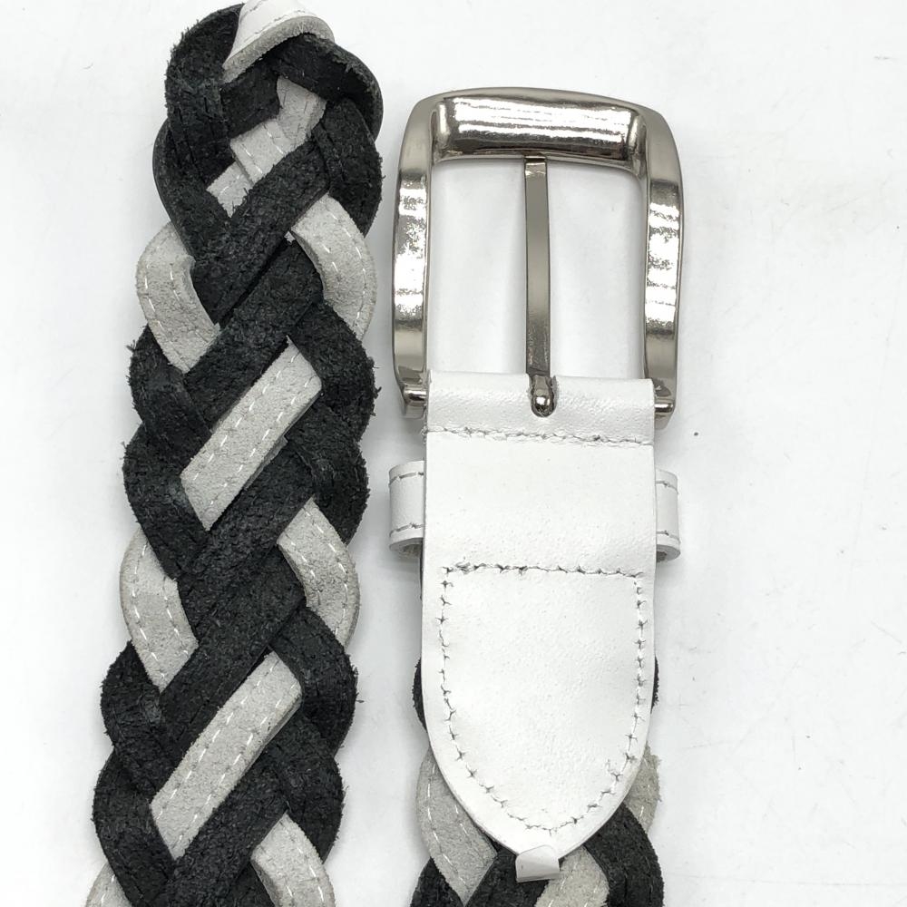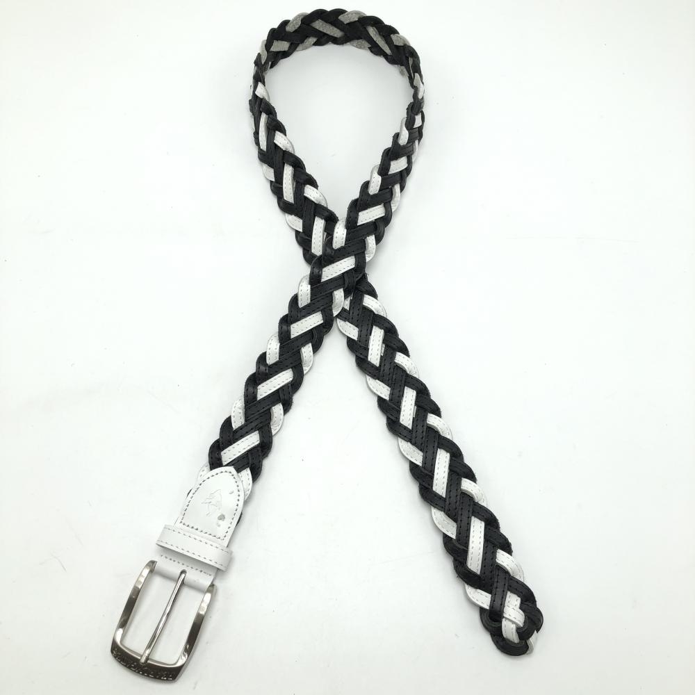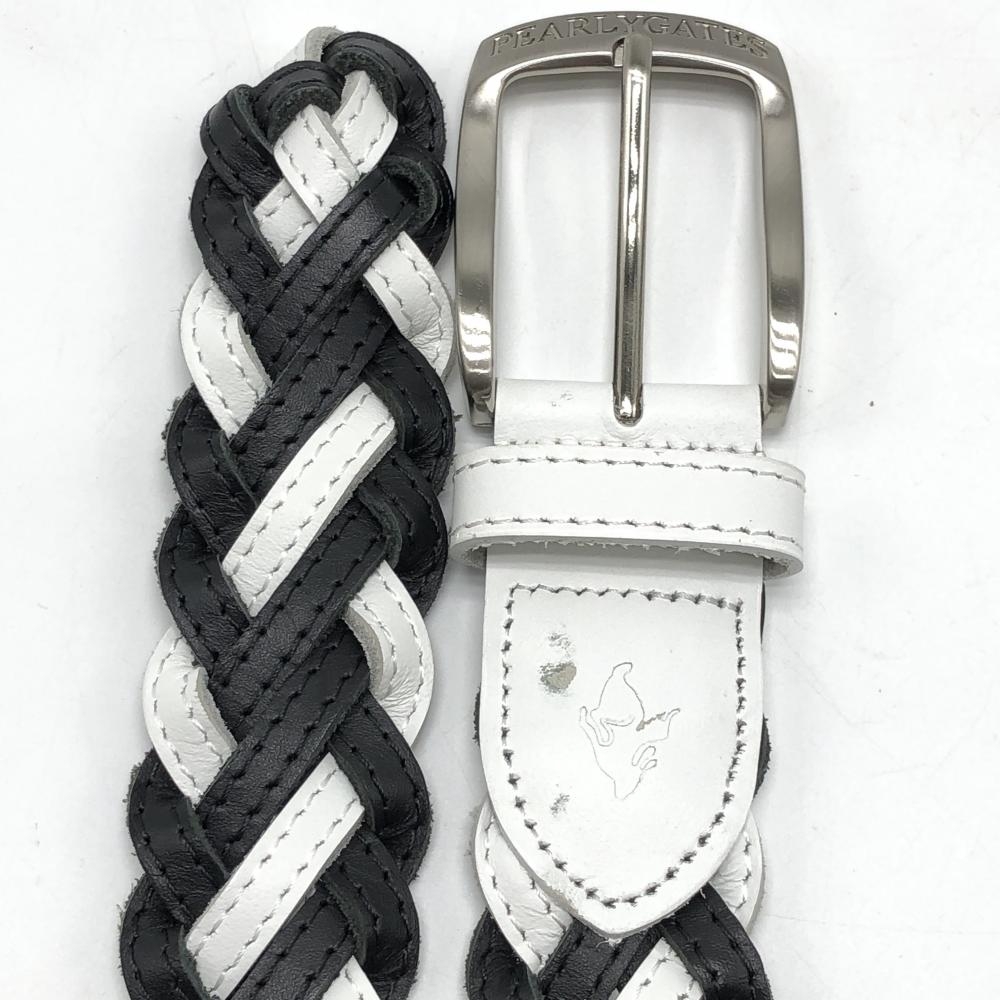 【美品】パーリーゲイツ 編み込みベルト 白×黒 バックルシルバー メンズ ゴルフウェア PEARLY GATES
