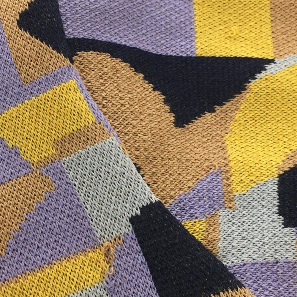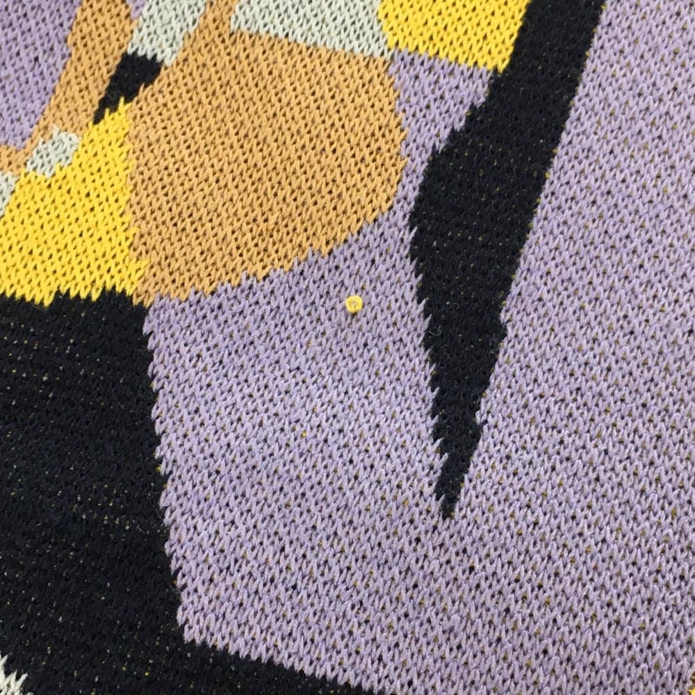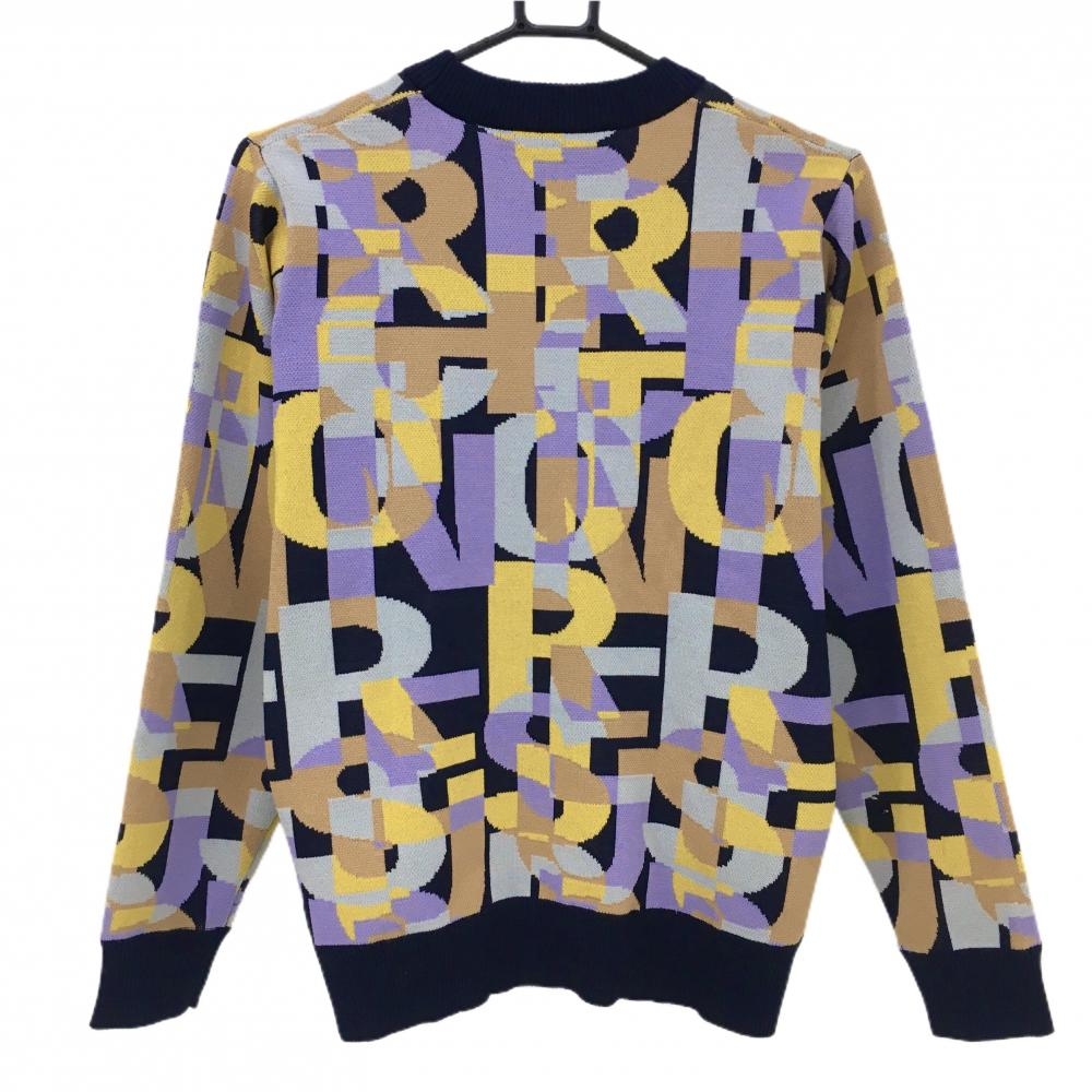 【美品】レザレクション セーター パープル×イエロー×ネイビー 総柄 裏地付き ニット レディース L ゴルフウェア Resurrection
