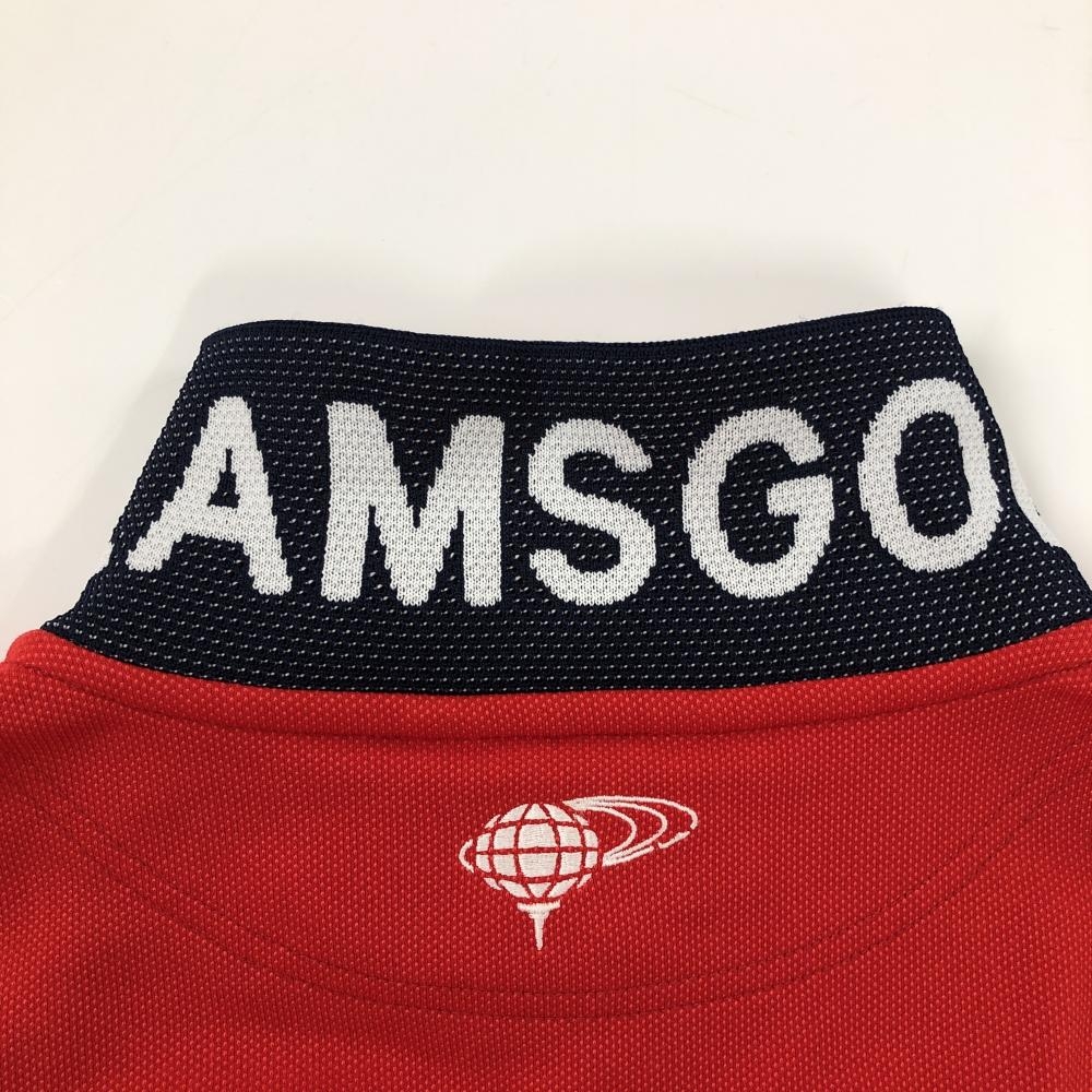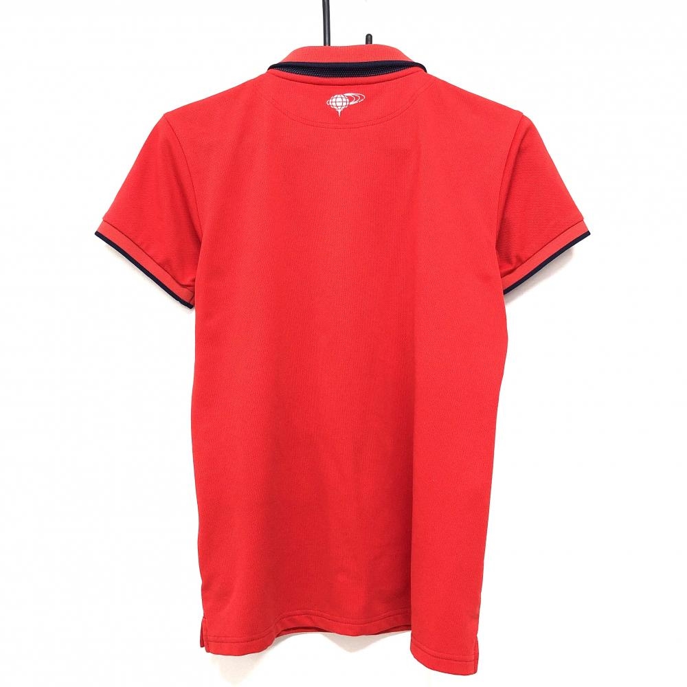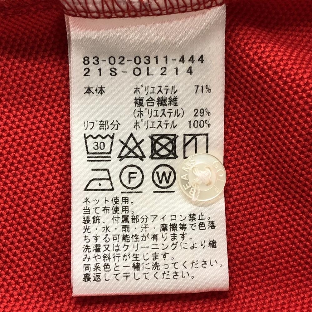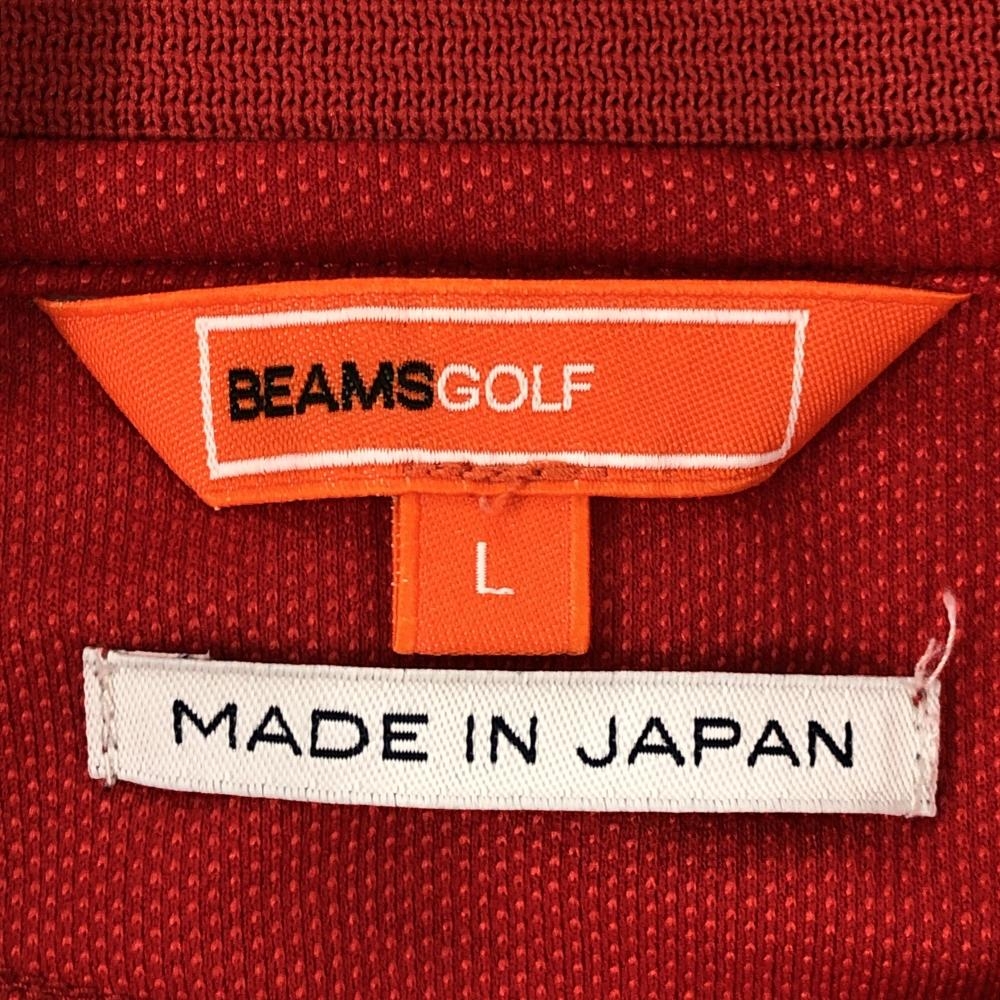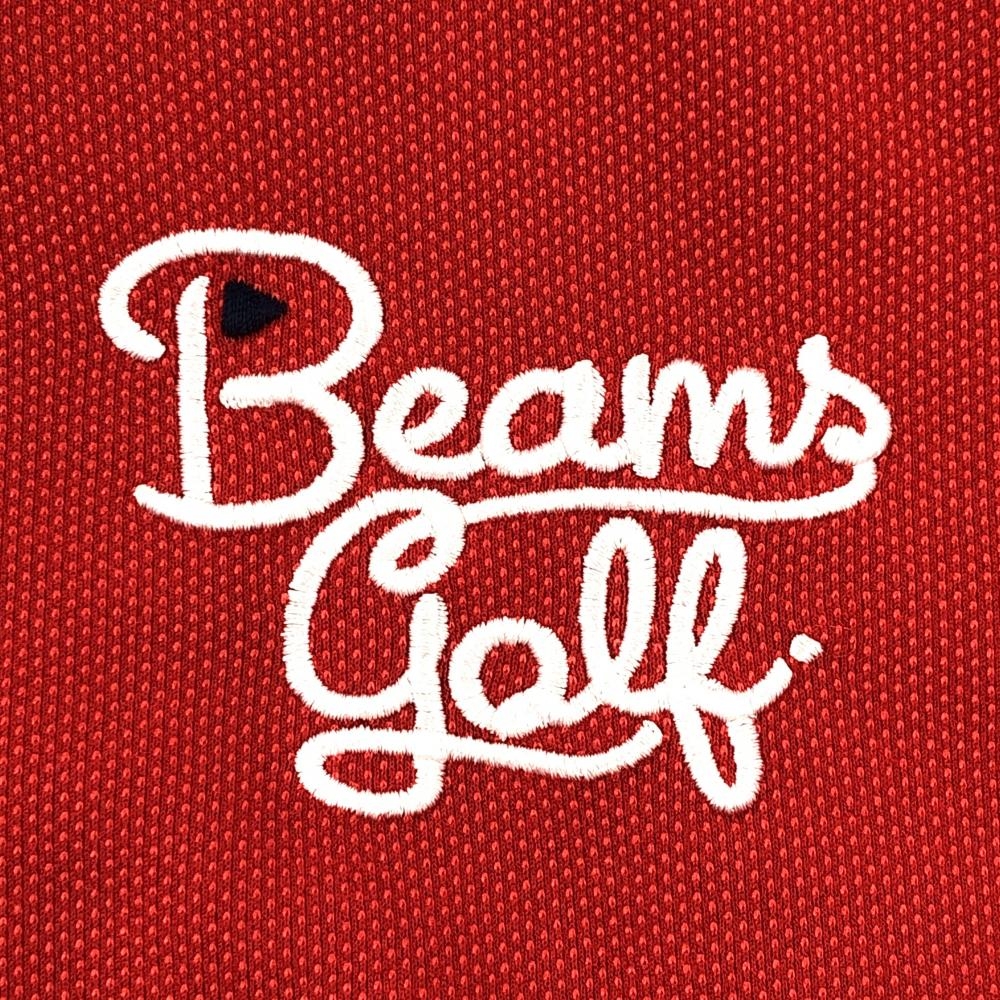 【美品】ビームスゴルフ 半袖ポロシャツ レッド 襟・袖口ライン ロゴ刺しゅう 日本製 レディース L ゴルフウェア BEAMS GOLF