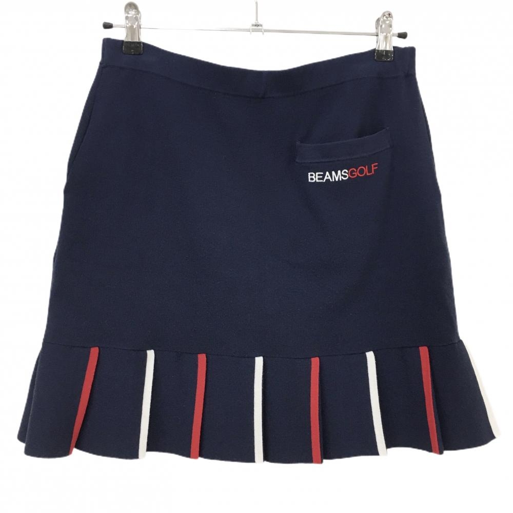 【美品】ビームスゴルフ ニットスカート ネイビー×レッド 裾プリーツ レディース L ゴルフウェア BEAMS GOLF