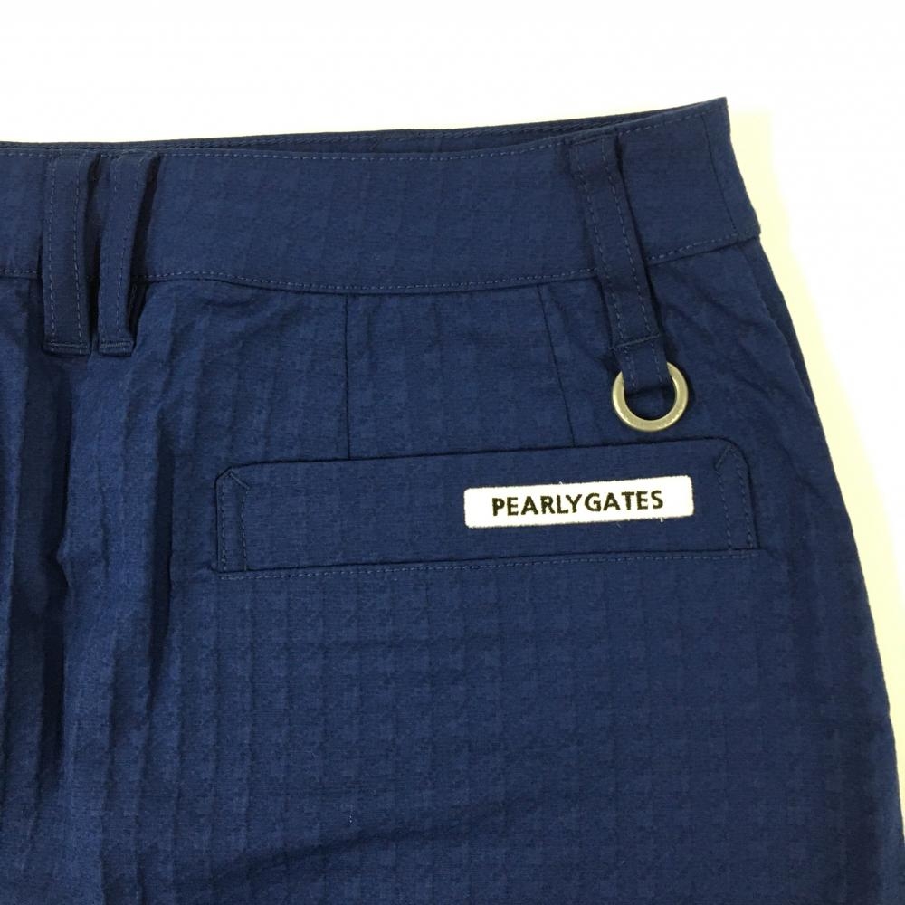 【新品】パーリーゲイツ スカート ネイビー×ゴールド チェーン柄 凸凹生地 サイドファスナー レディース 1(M) ゴルフウェア PEARLY GATES