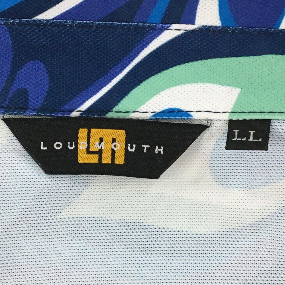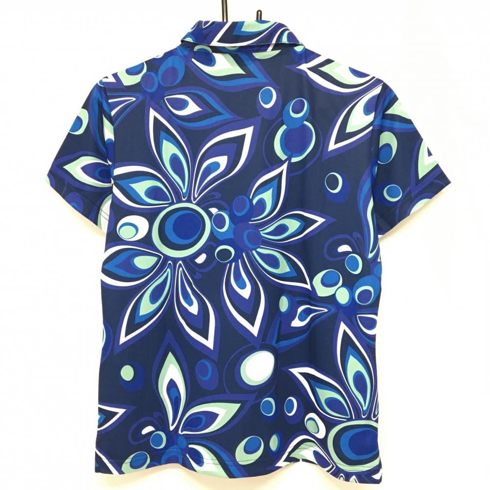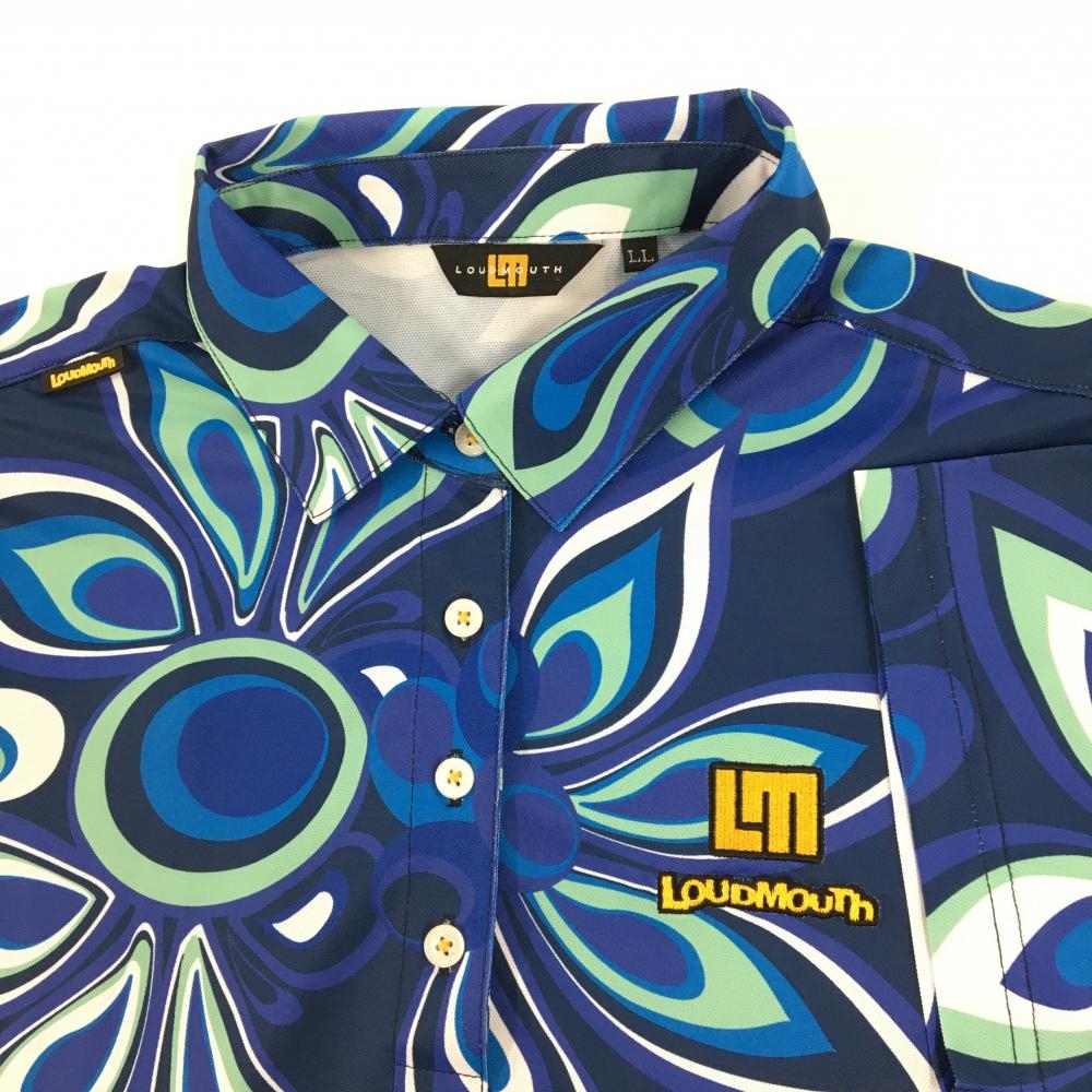 【超美品】ラウドマウス 半袖ポロシャツ ネイビー×ミントグリーン シャガデリック ロゴ刺しゅう レディース LL ゴルフウェア LOUDMOUTH