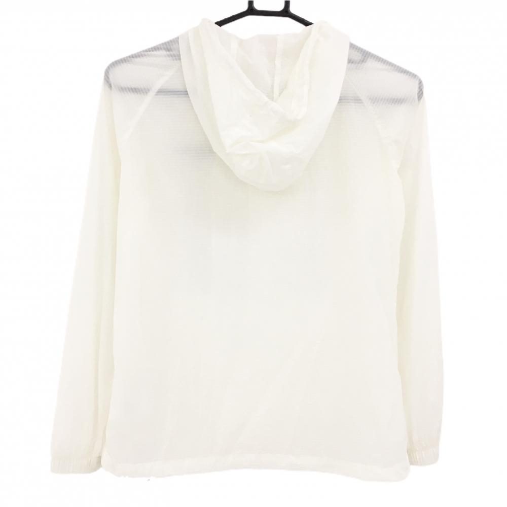 マリクレールスポール ナイロンパーカー 白 ボーダー 透け感 ドローコード レディース S ゴルフウェア marie claire
