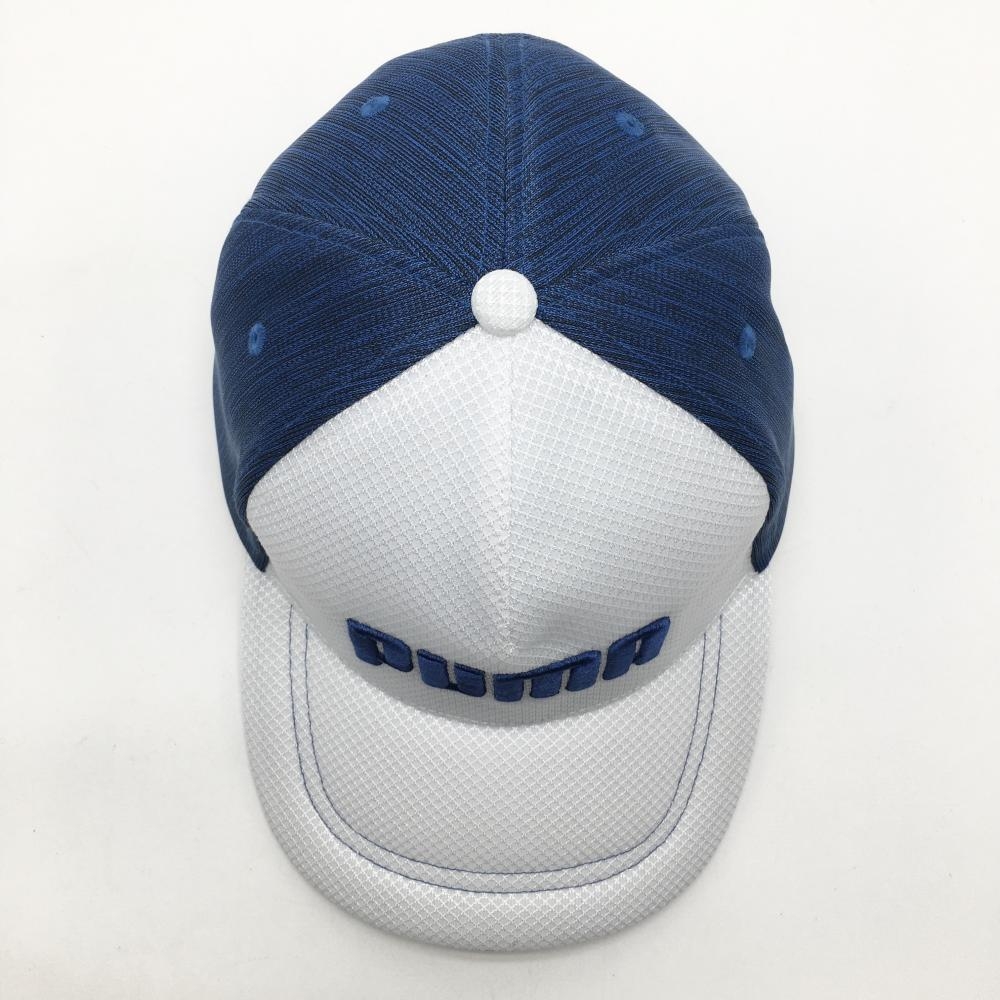 【美品】プーマ キャップ 白×ネイビー 立体ロゴ刺しゅう One Size Fits All(56~59cm) ゴルフウェア PUMA